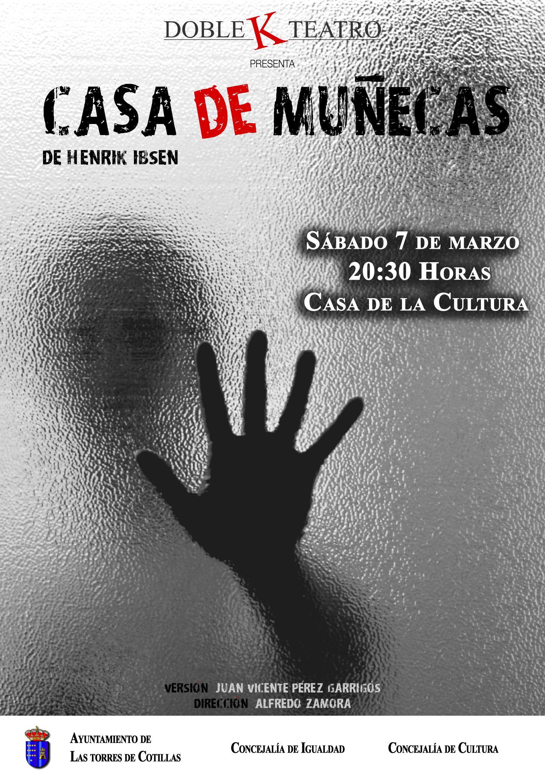 Además, incluida en estas actividades la Concejalía de Igualdad propone este fin de semana más actividades. Por un lado, una obra de teatro en la Casa de la Cultura Pedro Serna donde la compañía murciana Doble K Teatro interpretará con entrada gratuita la obra Casa de muñecas el sábado 7 de marzo (20’30 horas).
