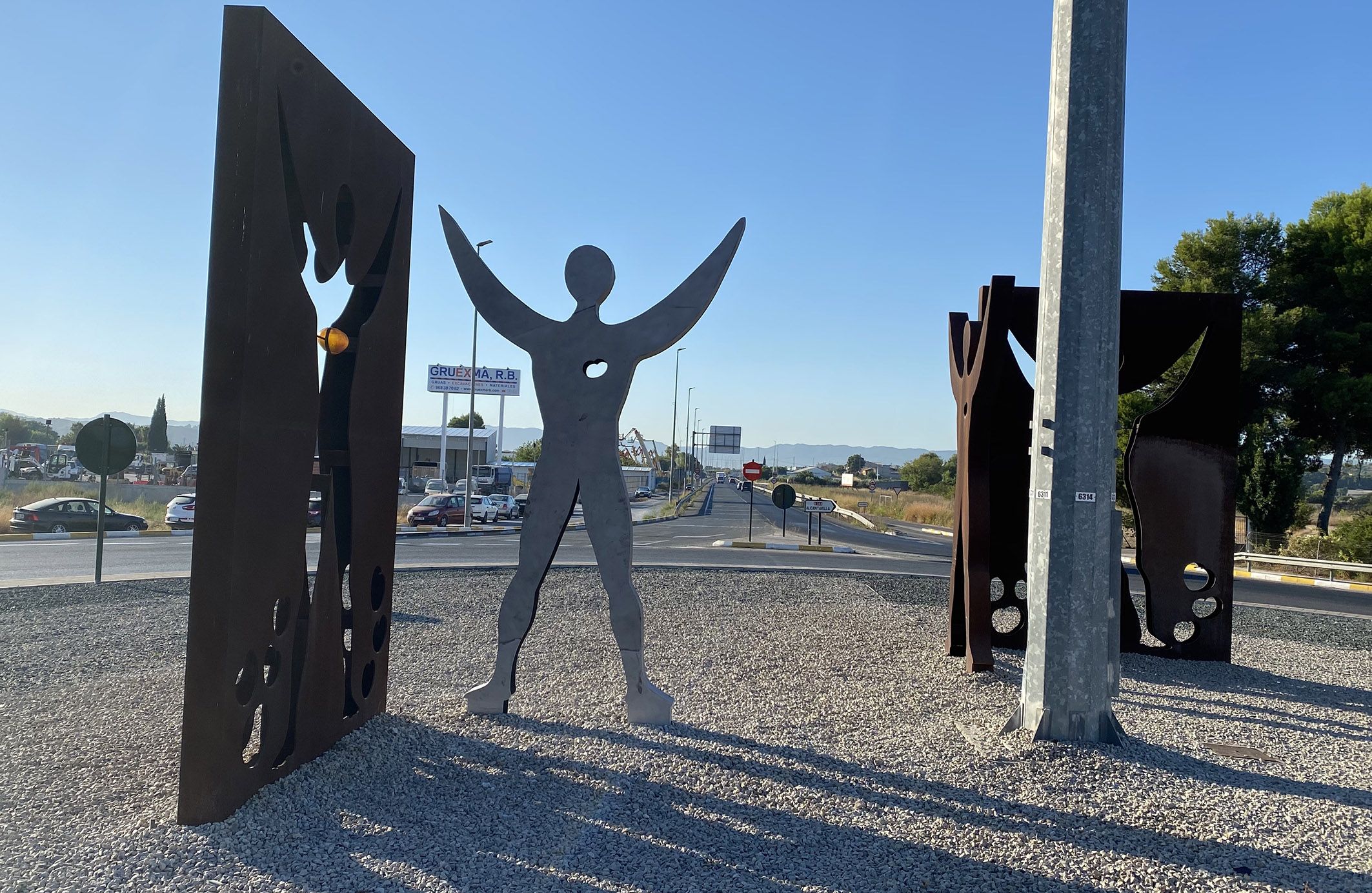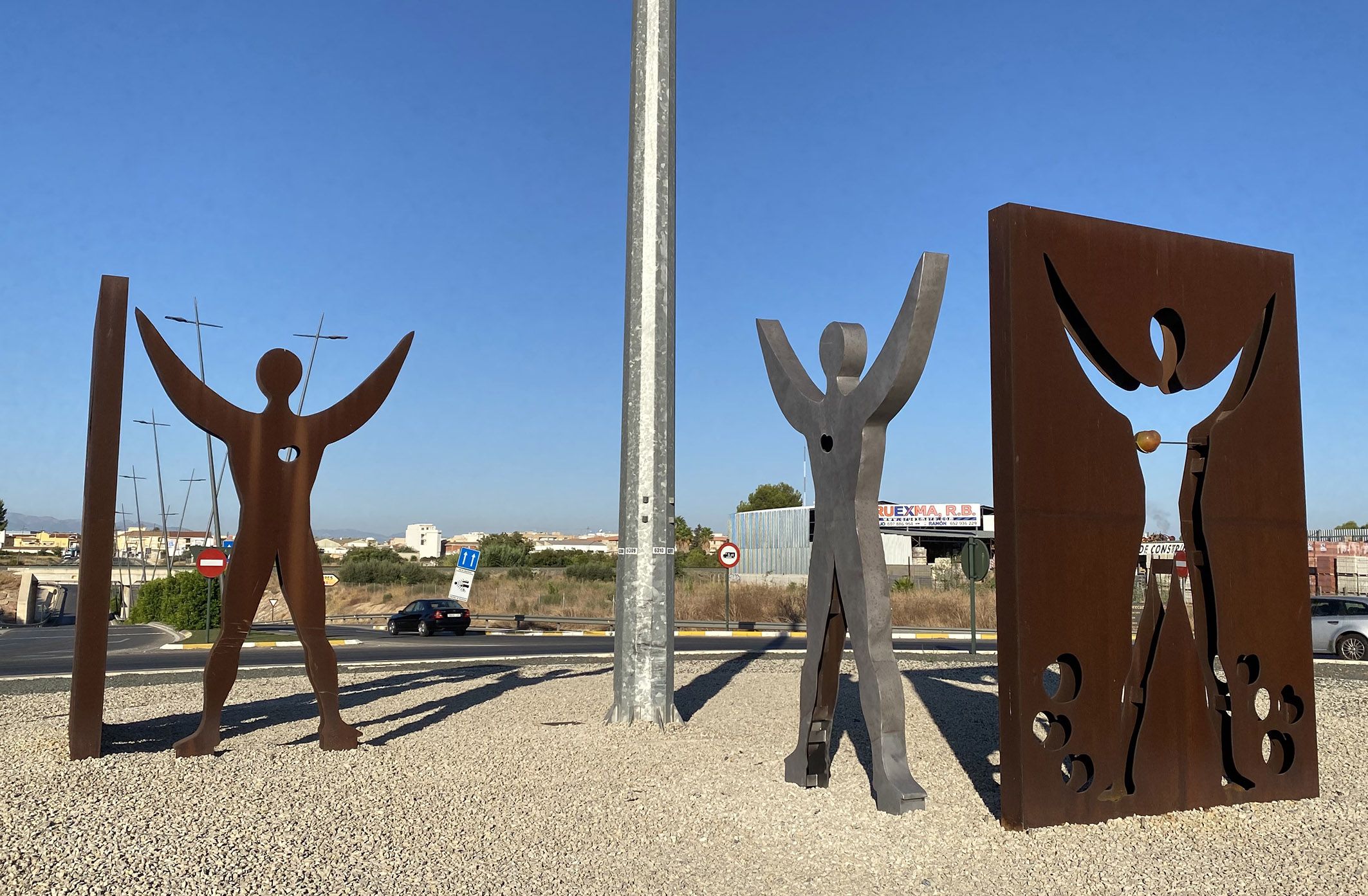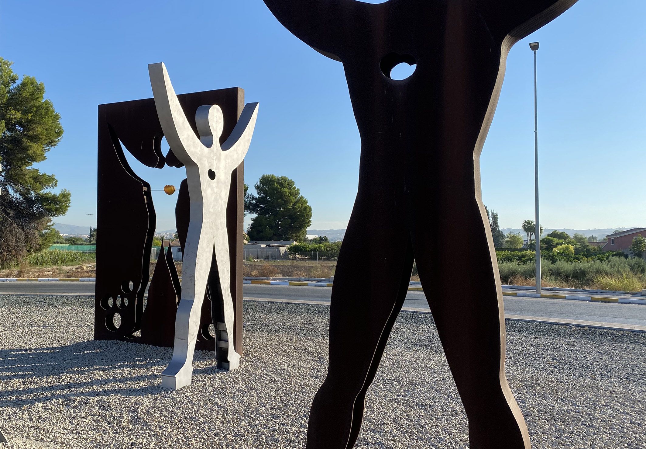 La obra que preside la redonda que conecta la prolongación de la avenida Juan Carlos I de Las Torres de Cotillas con la carretera N-344 ya luce renovada. Hace unas semanas un coche impactó contra la creación de la artista afincada en el municipio Anabel del Canto y le causó daños irreparables. Como era imposible su reparación, se hizo necesaria su completa reposición, que ha sido gestionada desde la Concejalía de Obras y Servicios.