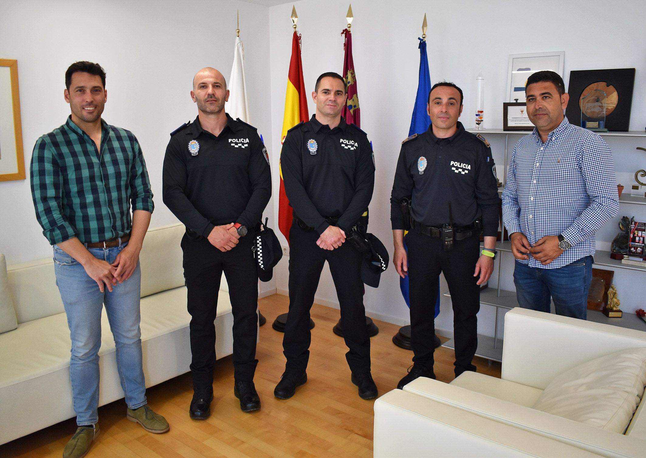 La Policia Local torrena incorpora dos nuevos agentesDos nuevos agentes se han incorporado a la plantilla de la Policía Local de Las Torres de Cotillas. Ambos han recibido hoy lunes 24 de abril la bienvenida por parte del alcalde torreño, Francisco Jesús López Manzanera, y de su concejal de Seguridad Ciudadana, Francisco José Caravaca Bravo, en un acto al que también ha asistido el inspector de la Policía Local, Diego Pérez Molina.