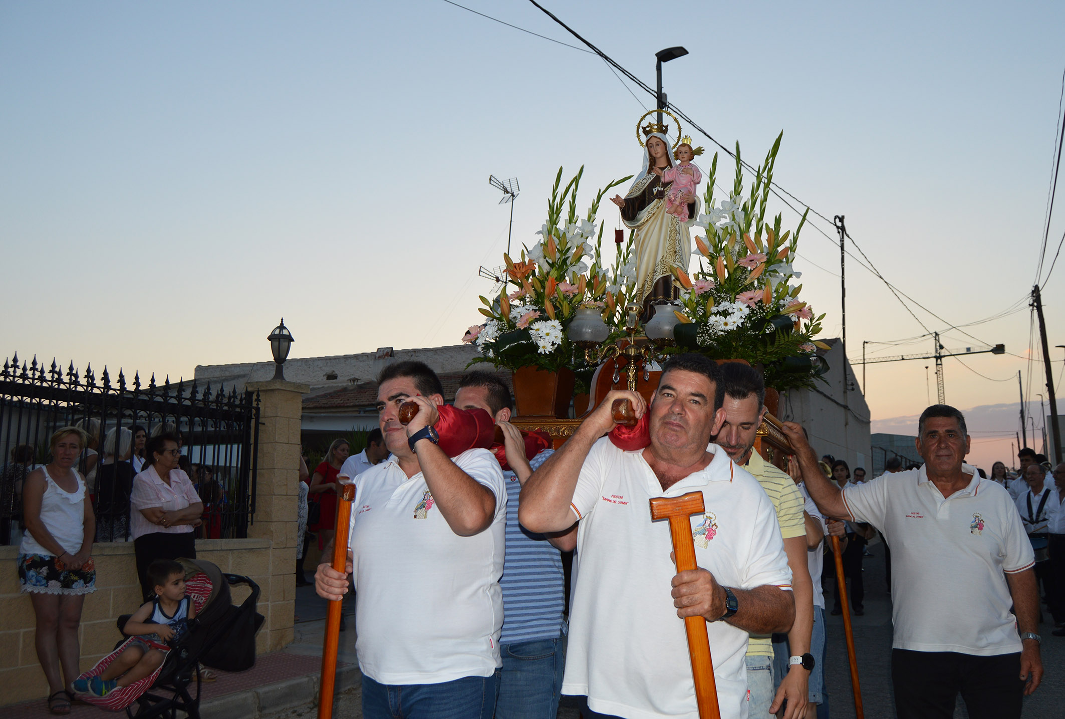 15/07/19 – El barrio del Carmen de Las Torres de Cotillas concluyó en la noche de ayer domingo 14 de julio sus fiestas patronales de este año. Como es tradición, el último acto del programa festivo fue la procesión con la imagen de la virgen del Carmen por las calles de la barriada. Un desfile que estuvo acompañado de la banda de música local y presidido por el alcalde torreño, Joaquín Vela Fernández, y que como aperitivo contó con una misa oficiada por el párroco Ismael Sánchez.