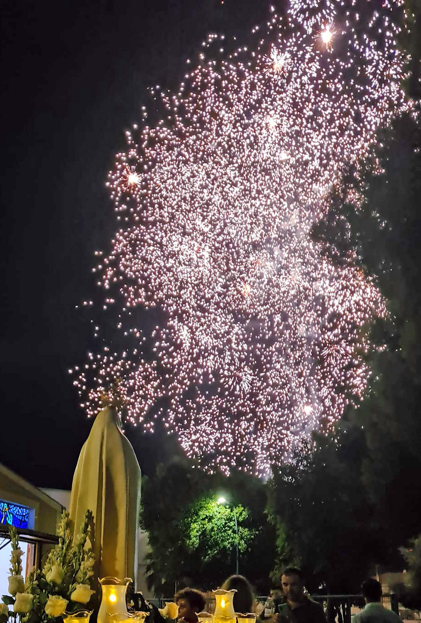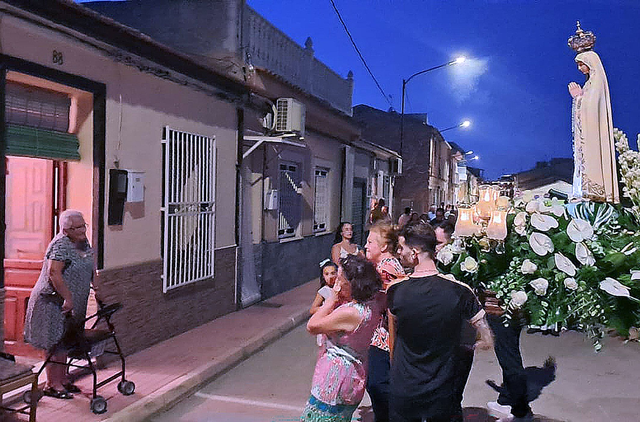 El barrio de Los Pulpites de Las Torres de Cotillas concluyó ayer martes 15 de agosto sus fiestas en honor a Nuestra Señora de Fátima. Lo hizo con la popular procesión con la imagen de la patrona, que una misa en su honor en la iglesia de la Asunción fue llevada a hombro por sus feligreses por su recorrido habitual. Y, como colofón a los festejos, un gran castillo pirotécnico derrochó espectáculo en el cielo torreño.