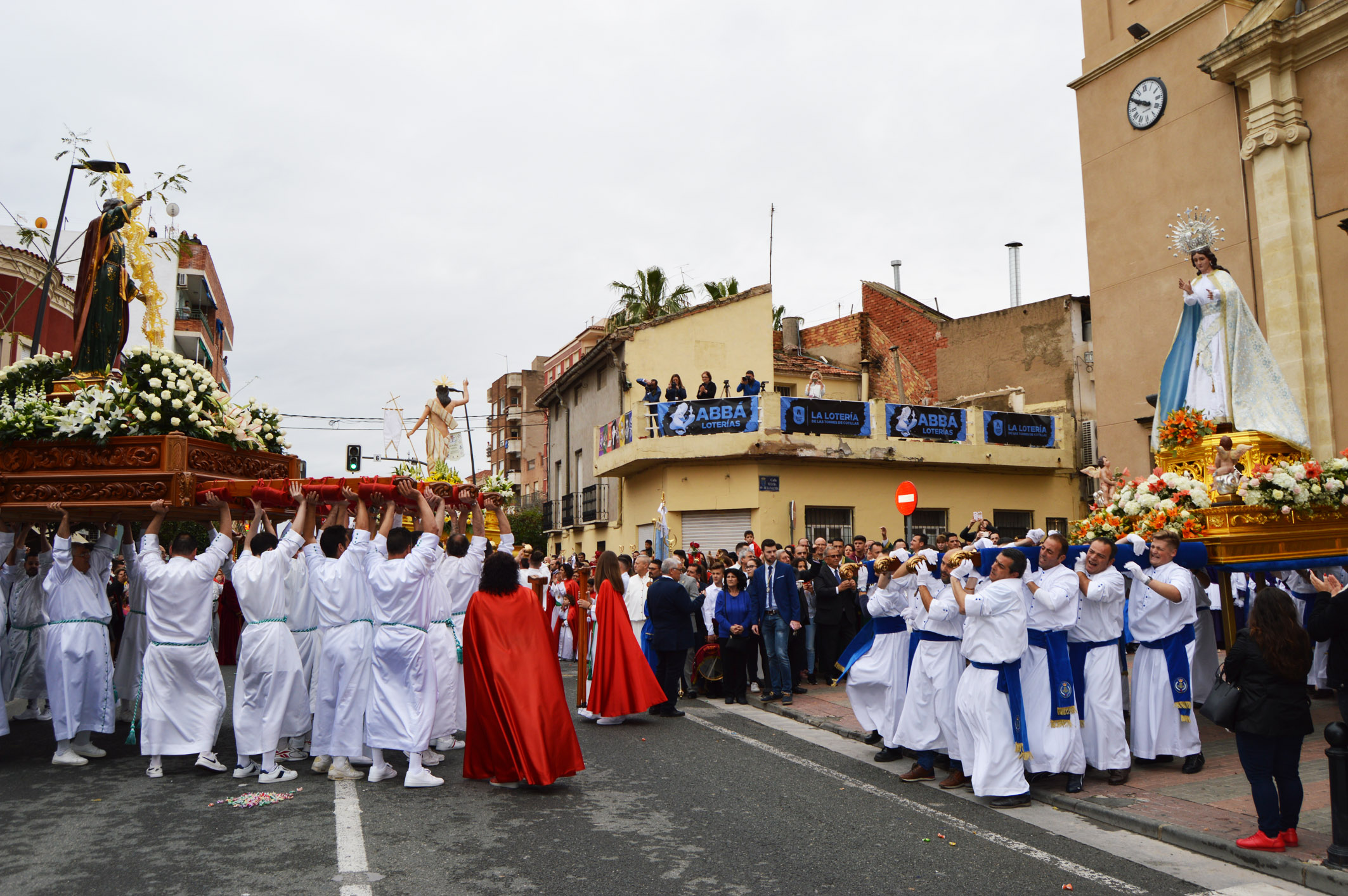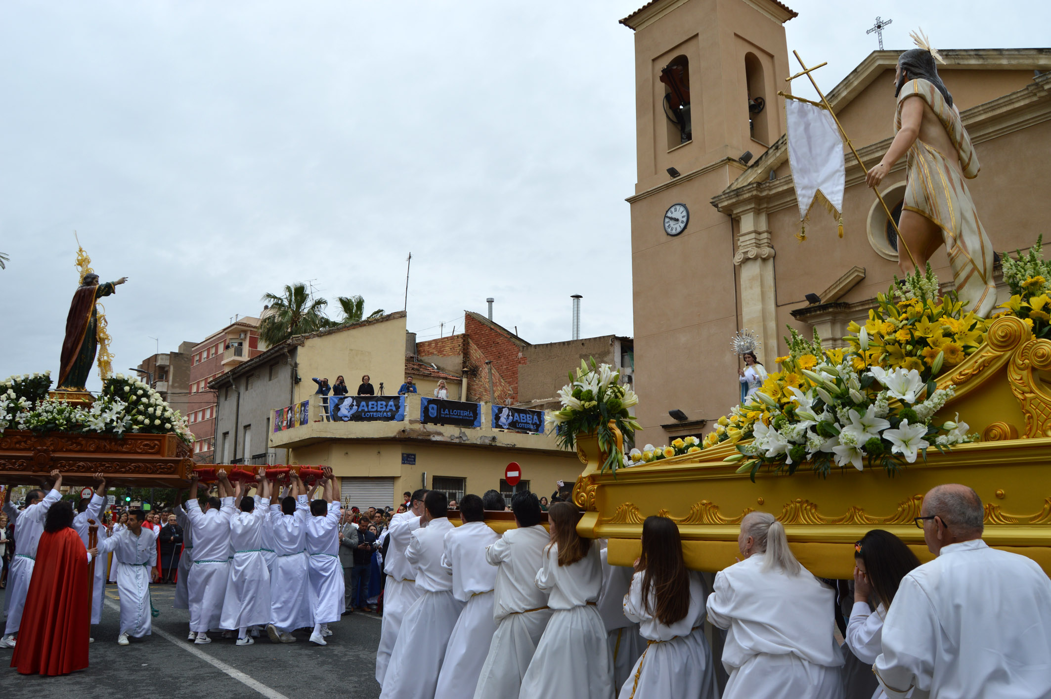 Todos miraban al cielo hoy a primera hora de la mañana en Las Torres de Cotillas, recelosos de que la lluvia pudiera impedir la salida de esperada la procesión del Resucitado. Pero finalmente el agua ha dado tregua y el desfile ha hecho las delicias de los torreños y torreñas que se habían visto desilusionados por la suspensión por el mal tiempo de las dos procesiones del Viernes Santo, la del Calvario y la del Santo Entierro de Cristo.