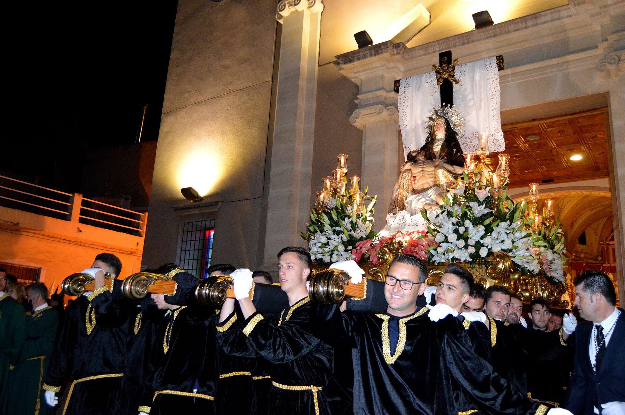 Como es tradición la noche de ayer Viernes Santo en Las Torres de Cotillas la procesión del Santo Entierro de Cristo fue la absoluta protagonista en la Semana Santa del municipio. Un desfile que salió desde la parroquia de Nuestra Señora de la Salceda y en el que el protagonismo todos los años recae en el Cristo Yacente, paso conocido como ‘La Cama’ y que pertenece a la cofradía de Nuestro Padre Jesús Nazareno. Un trono que comparte procesión con otros siete, ya que en esta participan las ocho hermandades torreñas.