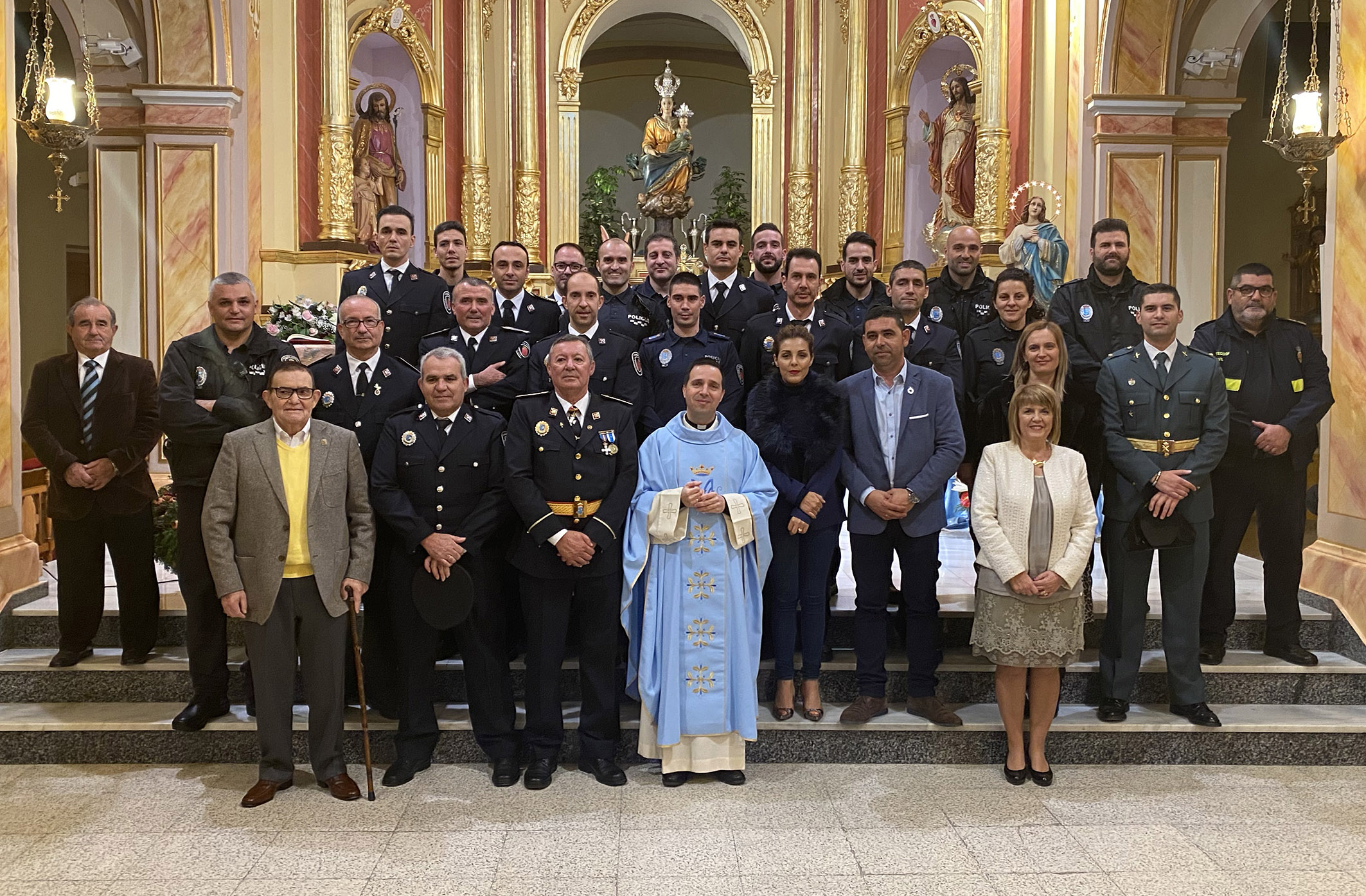 10/12/19 – La Policía Local de Las Torres de Cotillas ha querido honrar hoy martes 10 de diciembre a su patrona, la Purísima Concepción, por su reciente onomástica. Y lo ha hecho como todos los años: con una misa en la Iglesia de Nuestra Señora de la Salceda, que ha contado con la asistencia de la primera teniente de alcalde, María Ángeles Fernández Fernández, y el concejal de Seguridad Ciudadana, Francisco José Caravaca Bravo, y otros miembros de la Corporación municipal.