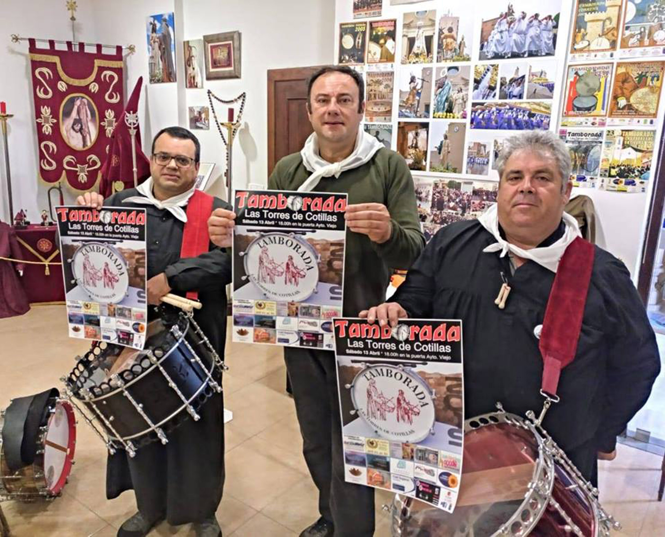 El próximo sábado 13 de abril los tambores volverán a su tradicional cita con Las Torres de Cotillas como aperitivo de la Semana Santa. Será desde las 18 horas con la Tamborada Torreña 2019, que arrancará un año más en la Plaza Mayor del municipio. Allí se irán congregando los participantes con sus atronadores instrumentos para ir calentando motores.