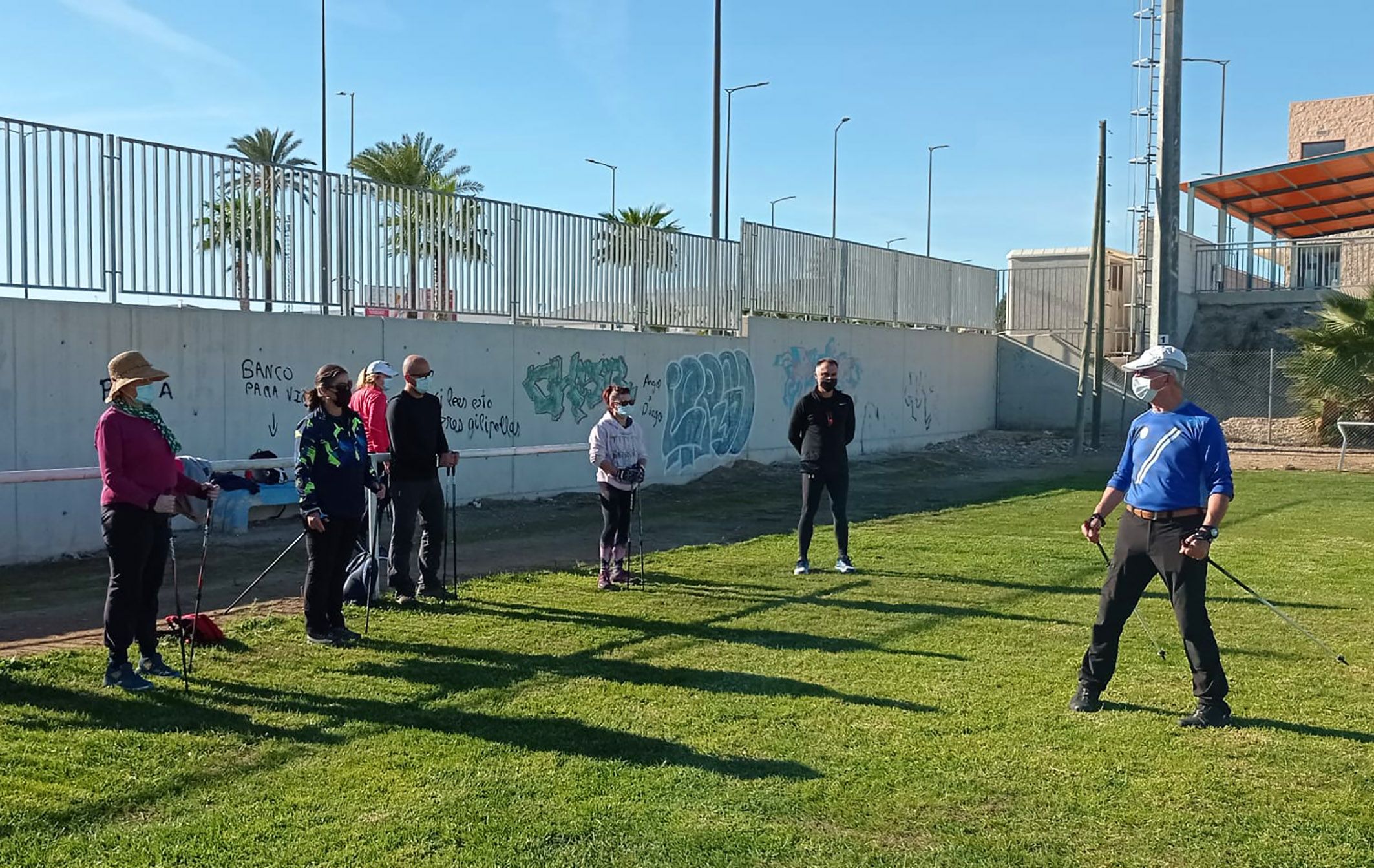 La Concejalía de Salud y Deporte de Las Torres de Cotillas celebró el pasado domingo 13 diciembre la tercera edición de su curso iniciación a la marcha nórdica. De nuevo con la colaboración de los clubes Nordic Walking Murcia y Atletismo Las Torres, esta actividad al aire libre tuvo lugar entre el campo municipal de césped natural y el parque de la Emisora con un estricto protocolo de seguridad sanitaria anti-COVID.