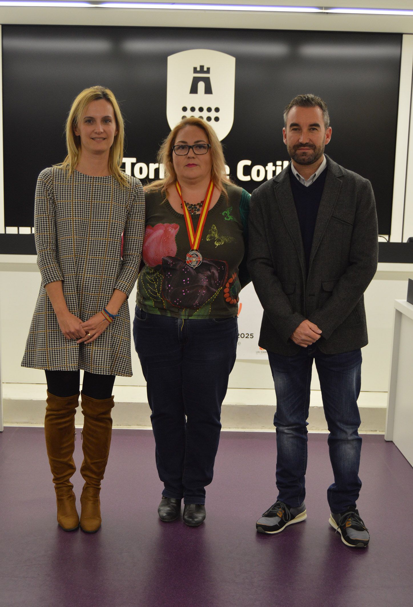 La torreña Mónica Puche, subcampeona de España de arco desnudo en sala 3D (2) “Tras quedar segunda en el campeonato territorial me veía preparada para competir y estoy muy contenta con esta medalla, mi primera a nivel nacional”, explica Puche, que el pasado lunes 18 de diciembre fue recibida en el Ayuntamiento por la alcaldesa torreña, Isabel María Zapata, y su concejal de Actividad Física y Deportes, Ginés Pérez. “Es una satisfacción contar con deportistas de este nivel en nuestro municipio”, destaca la alcaldesa, que ha querido hacer llegar a Mónica su “felicitación y la de todo el municipio de Las Torres de Cotillas”.