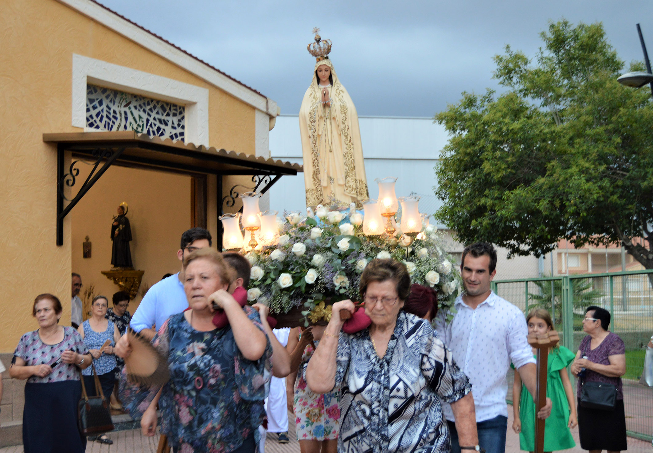 Las fiestas en honor a Nuestra Señora de Fátima del barrio de Los Pulpites de Las Torres de Cotillas concluyeron el pasado miércoles 15 de agosto con una jornada dedicada íntegramente a la patrona. Por la mañana se celebró una misa en honor a Nuestra Señora de Fátima, que ya por la tarde protagonizó la tradicional procesión -a la que asistió la alcaldesa torreña, Isabel María Zapata- por las calles del barrio. A su conclusión, un gran castillo de fuegos artificiales puso el fin a las fiestas.