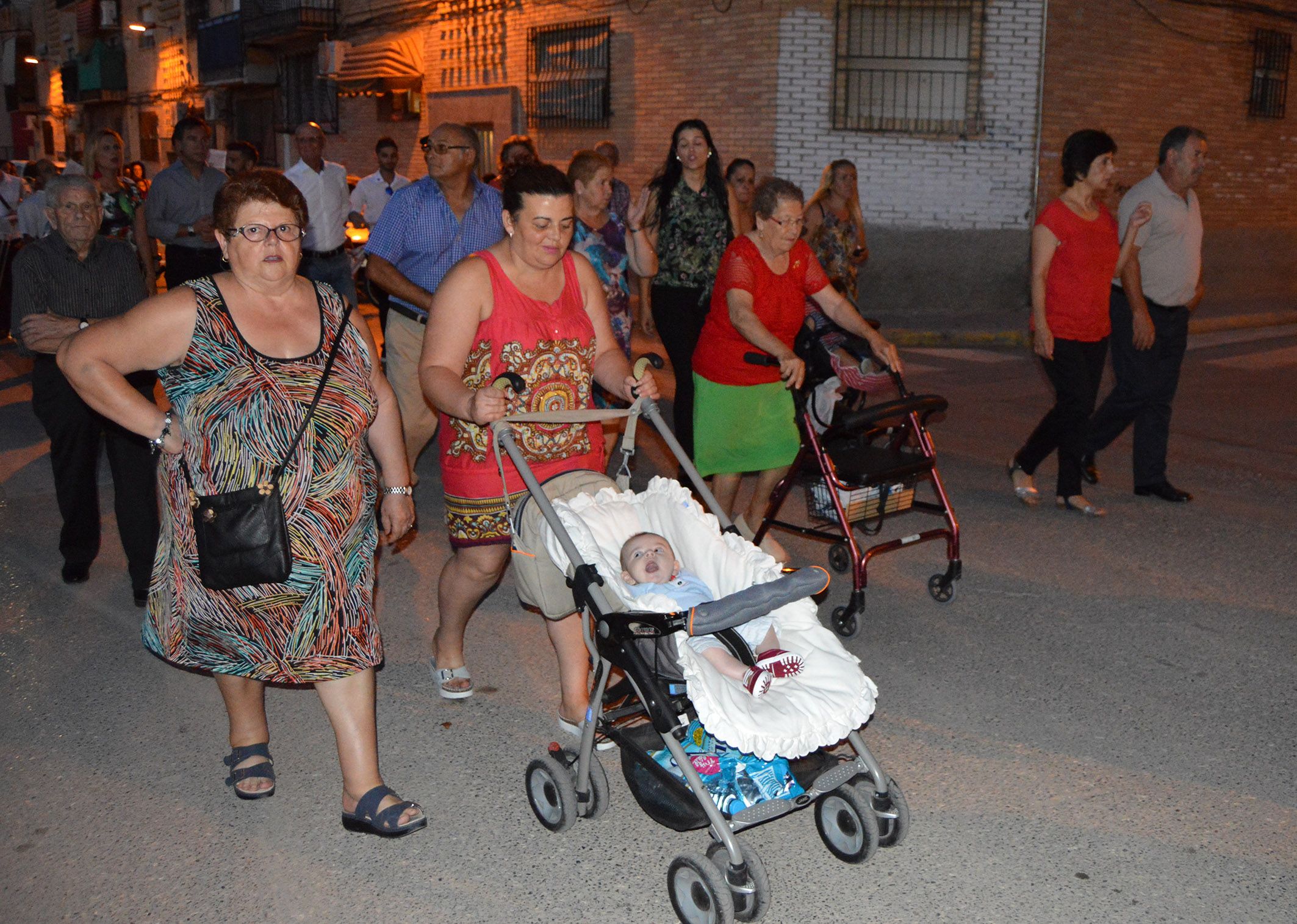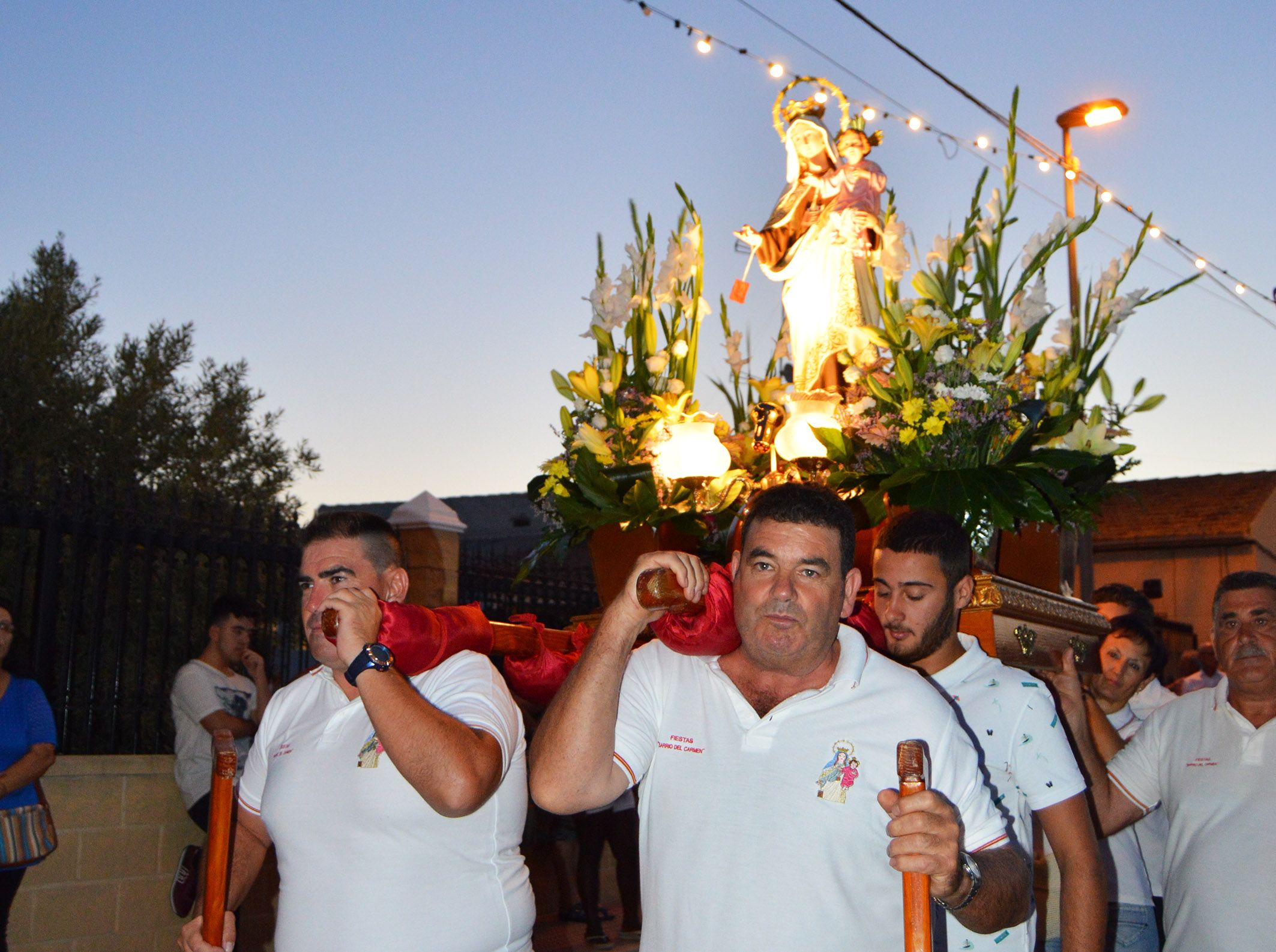 El barrio del Carmen de Las Torres de Cotillas mostró en la noche de ayer domingo 16 de julio el gran cariño que profesa a su patrona y le rindió como todos los años un fervoroso homenaje. Con motivo de la onomástica de la Virgen del Carmen los vecinos de esta barriada torreña primero celebraron la tradicional misa de estos festejos, oficiada por el párroco local Ismael Sánchez.