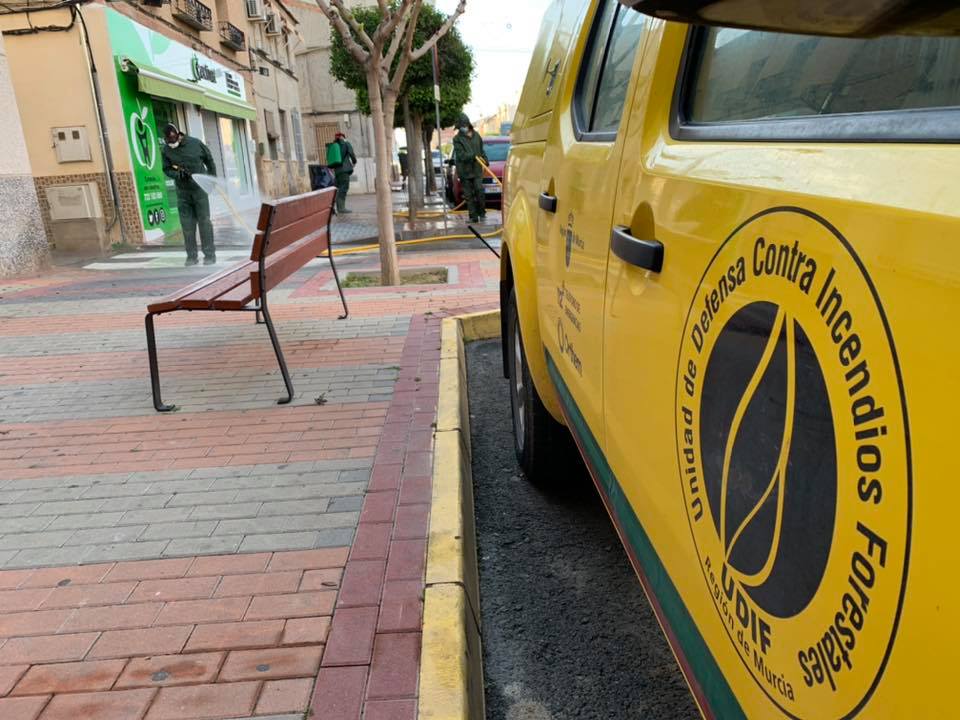 Las Brigadas Forestales de la Región de Murcia colaboran en las labores de limpieza y desinfección del municipio