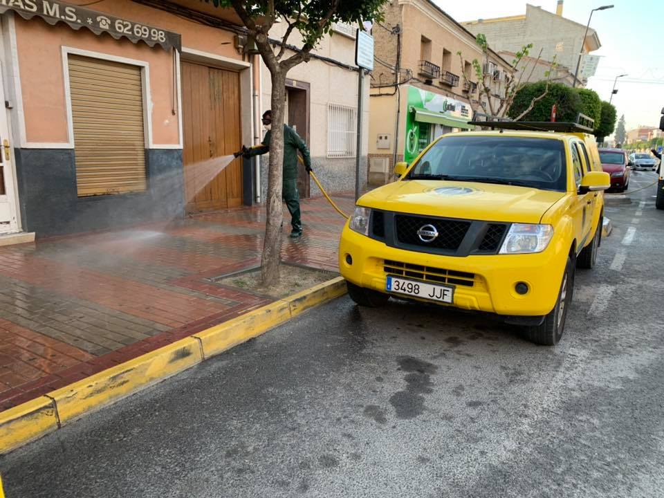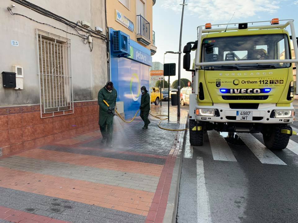 Las Brigadas Forestales de la Región de Murcia están colaborando en las labores de limpieza y desinfección de las zonas de mayor afluencia de personas de Las Torres de Cotillas, y diferentes calles del municipio y pedanías. Estos trabajos, que se realizan como medidas de prevención para evitar la propagación del Covid-19, se están desarrollando en espacios públicos anexos a servicios públicos, centros sanitarios, gasolineras, supermercados, bancos, comercios, farmacias...