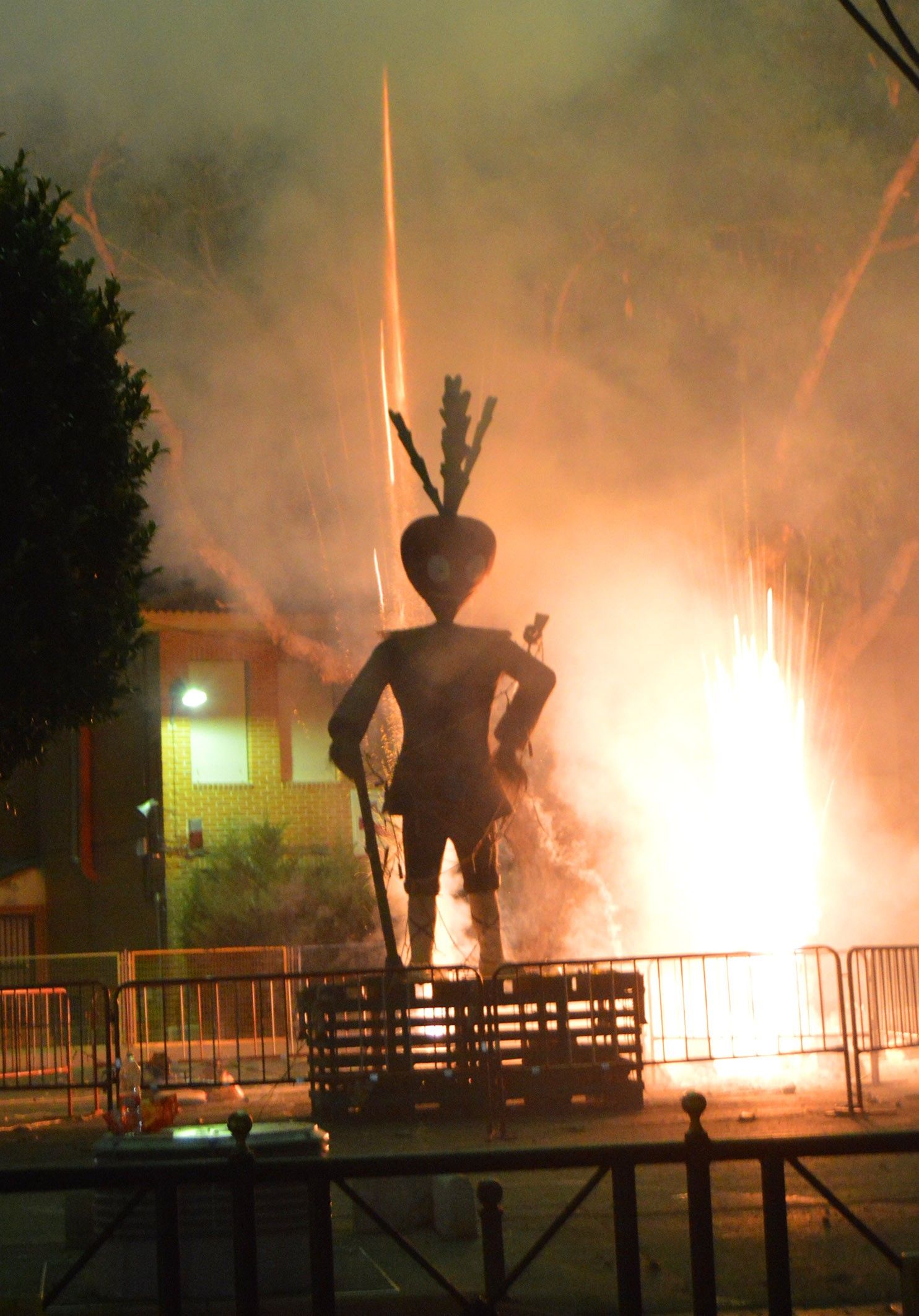 Finalmente, el gran espantapájaros de cartón piedra -diseñado este año por Jesús Pastor y elaborado por los artesanos locales Pedro Fermín López y Rubén Fernández- comenzó a arder. Un muñeco que cada año homenajea el importante pasado huertano de Las Torres de Cotillas y que se rindió a las llamas bajo los acordes del Canto a Murcia y la mirada expectante del público que abarrotó el entorno.