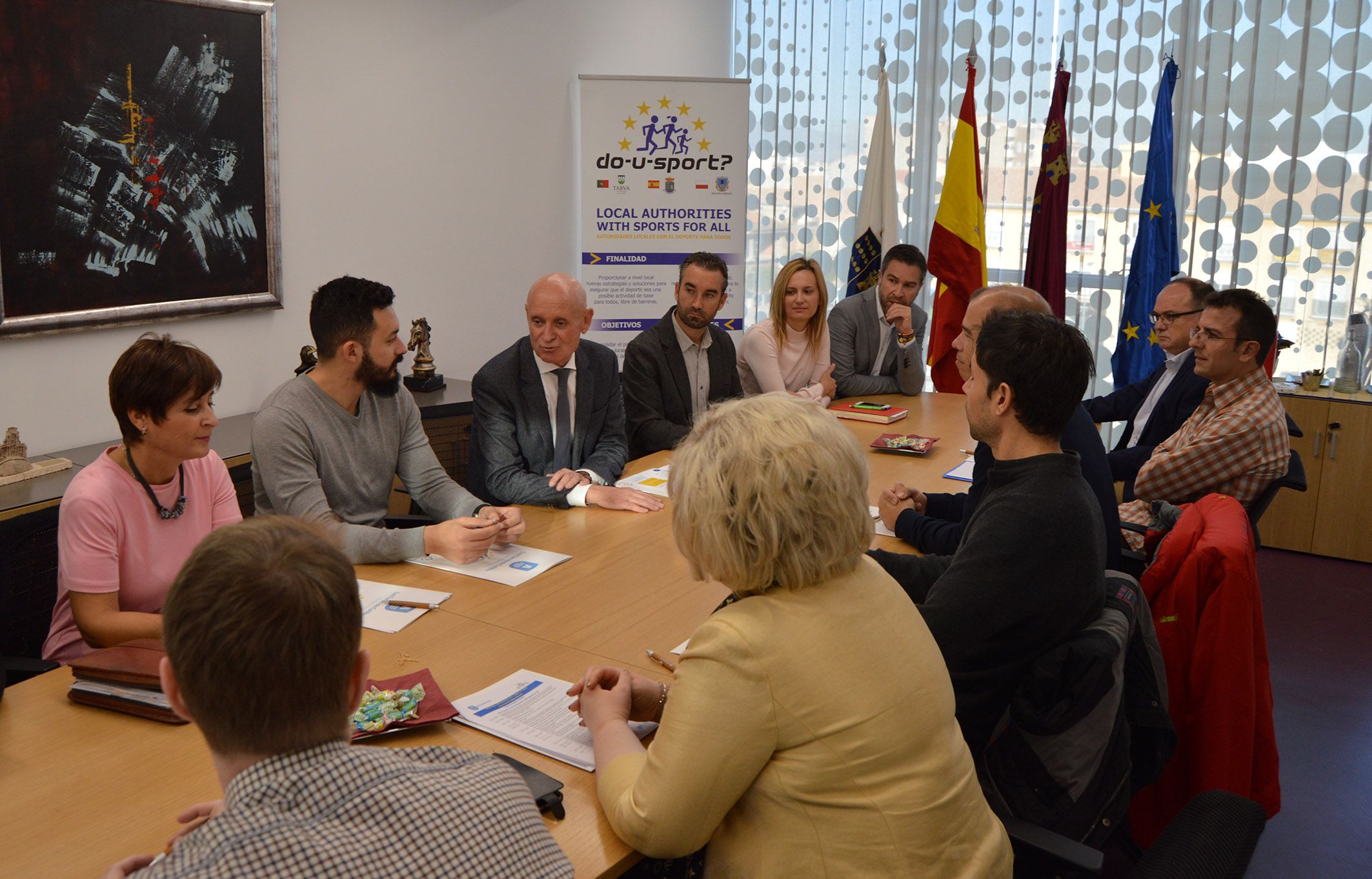 El proyecto europeo ‘Do-U-Sport’ sigue su curso en Las Torres de Cotillas. Esta semana el municipio acoge la visita de las expediciones de sus dos socios en esta iniciativa, las localidades de Mielec (Polonia) y Tábua (Portugal), con el objetivo de celebrar el tercer encuentro presencial de trabajo de esta actividad. “Ya hemos participado en dos encuentros previos muy satisfactorios en las localidades de nuestros compañeros de proyecto y ahora es nuestro turno”, explica el concejal de Juventud, Actividad Física y Deporte, Ginés Pérez.