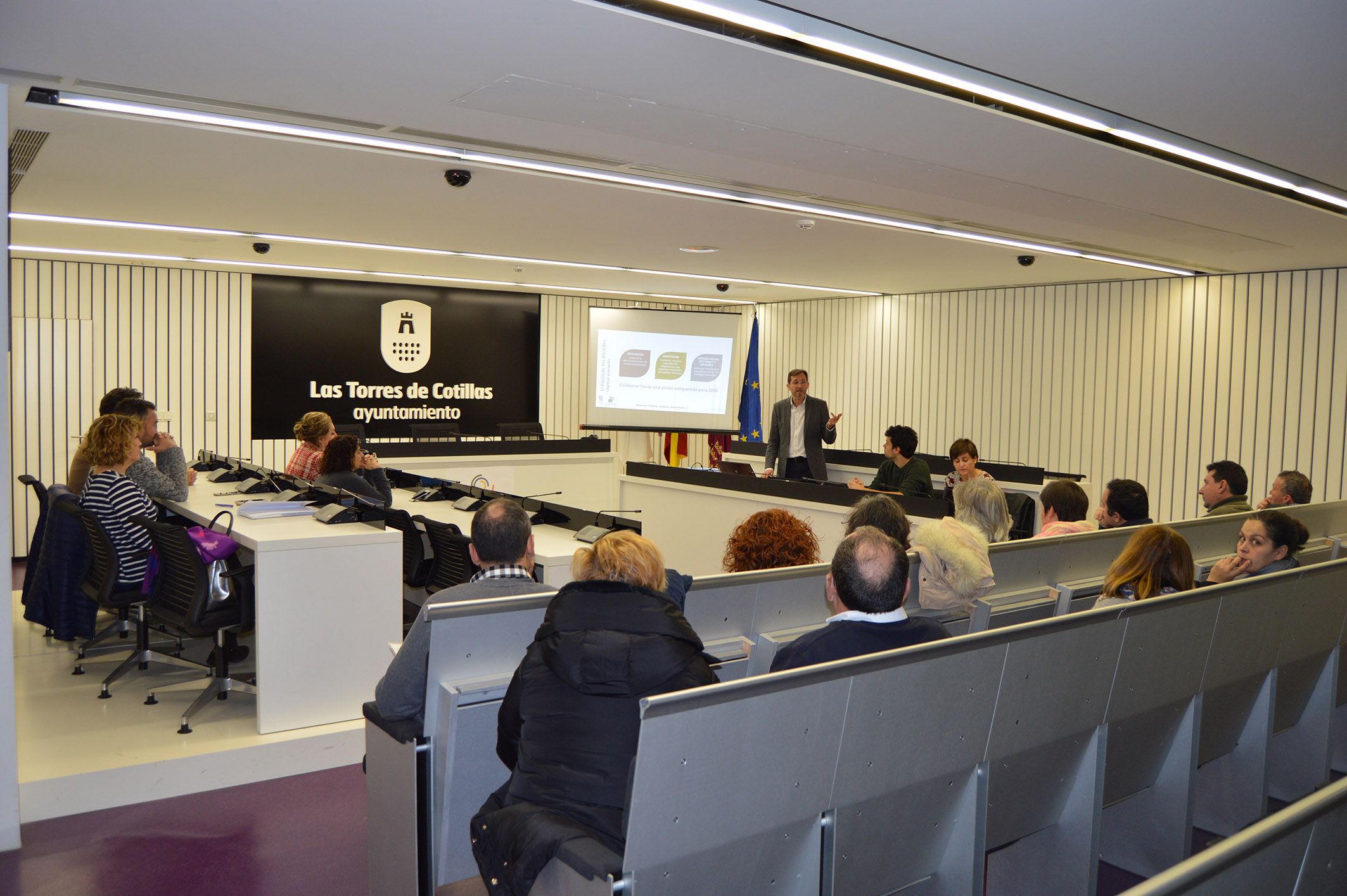 Para ello, el Ayuntamiento torreño ha comenzado el proceso de participación ciudadana para realizar un ‘Plan de Acción para el Clima y la Energía Sostenible’ (PACES). “Estamos trabajando en su redacción y para ello estamos realizando presentaciones a colectivos del municipio que queremos que aporten sus propuestas”, señala Zapata. En este marco de actuación, el pasado martes 16 de enero hubo un encuentro con grupos políticos y sindicatos, mientras que mañana viernes 19 se celebrará uno con concesionarios municipales y principales empresas y asociación de comerciantes, y otro con empleados del consistorio.