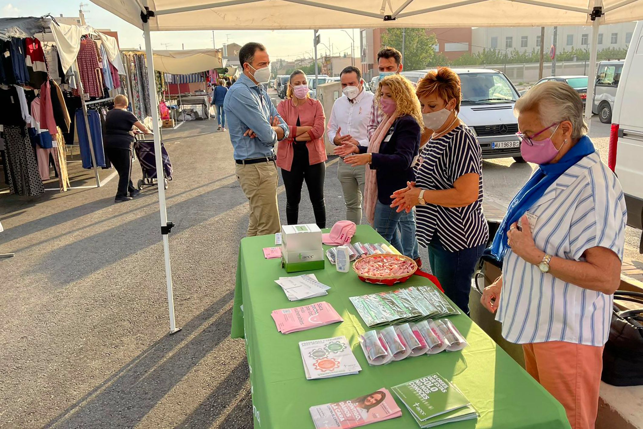 Un año más el municipio de Las Torres de Cotillas se vuelca para conmemorar el día mundial del cáncer de mama, fecha señalada en el calendario todos los 19 de octubre. Esta mañana la junta local de la Asociación Española contra el Cáncer (AECC) volvía al mercado semanal del municipio tras el parón obligado por la pandemia. Allí instaló su tradicional mesa de información y concienciación sobre esta enfermedad, y repartió lazos rosas conmemorativos como símbolo contra el cáncer de mama.