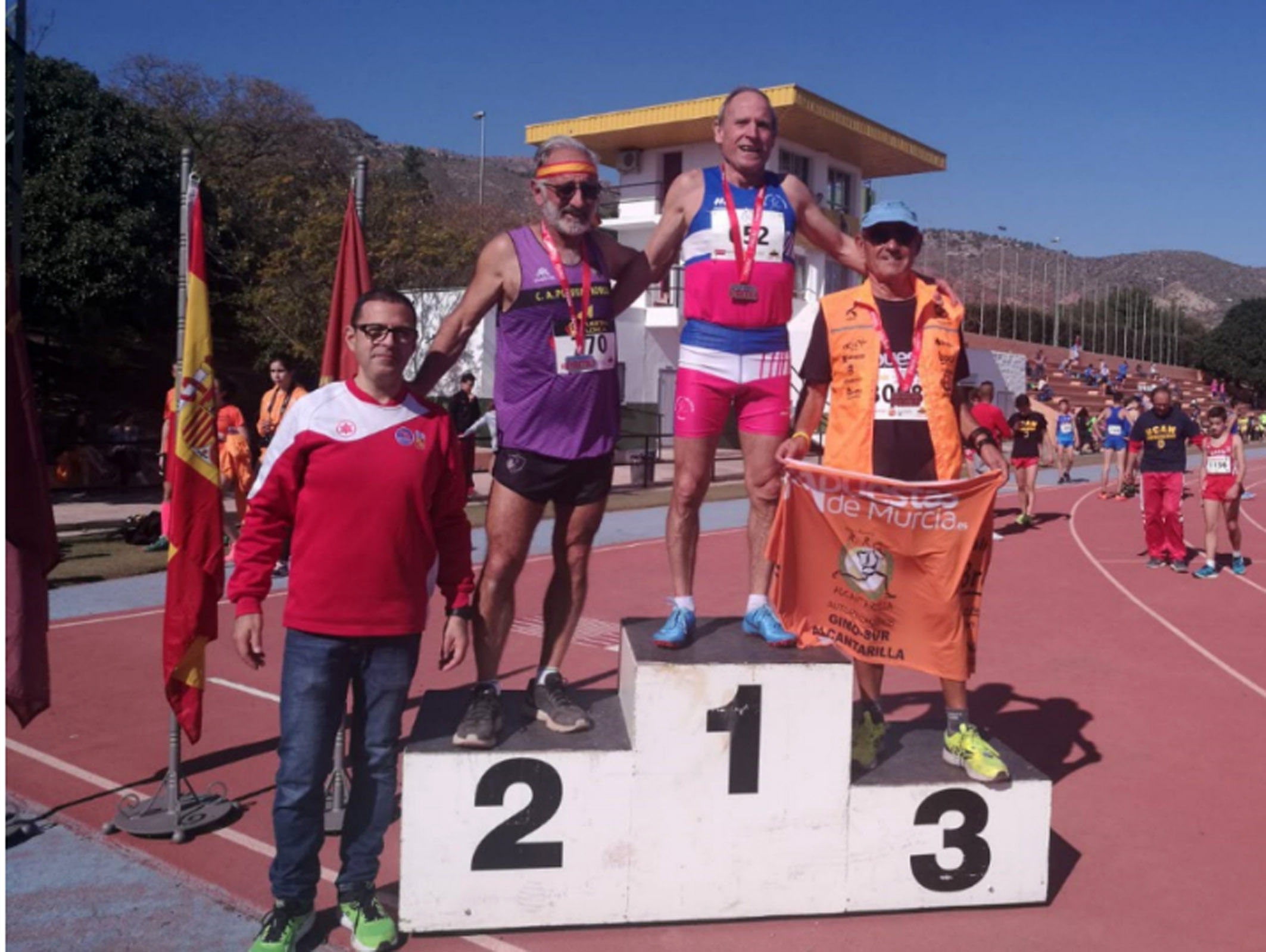 Por un lado, Salinas se colgó tres oros en el campeonato regional master de invierno celebrado en Lorca. Lo hizo en sus pruebas favoritas, las de velocidad, en las que es un claro dominador desde hace varios años: en 60 metros (8'45’’), en 200 metros (28'03’’) y en 400 metros (1:02'59’’).