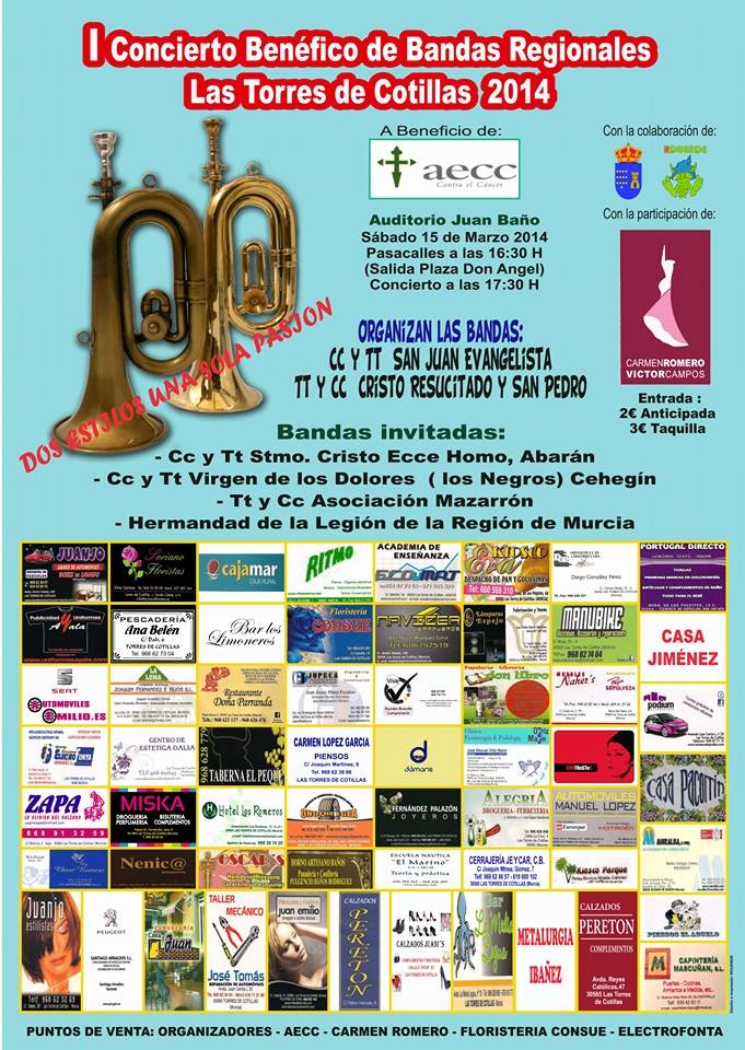 Este concierto cuenta con la colaboración de la Concejalía de Cultura de Las Torres de Cotillas y de la “Academia de Baile Carmen Romero y Víctor Campos”.
