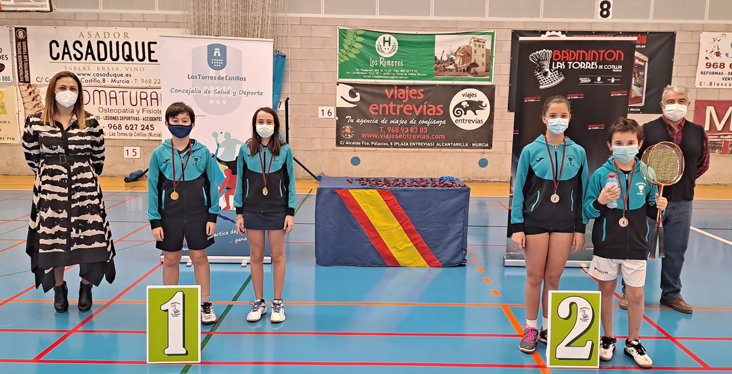 El pabellón Mireia Belmonte de Las Torres de Cotillas acogió el tradicional torneo navideño de escuelas de bádminton del municipio, organizado por la sección de bádminton del C.A. Las Torres en colaboración con la Concejalía de Salud y Deporte. En él participaron cerca de medio centenar de jugadores menores de 18 años provenientes de tres clubes murcianos: el Bádminton Infante, el Club 30740 de San Pedro y el propio anfitrión.