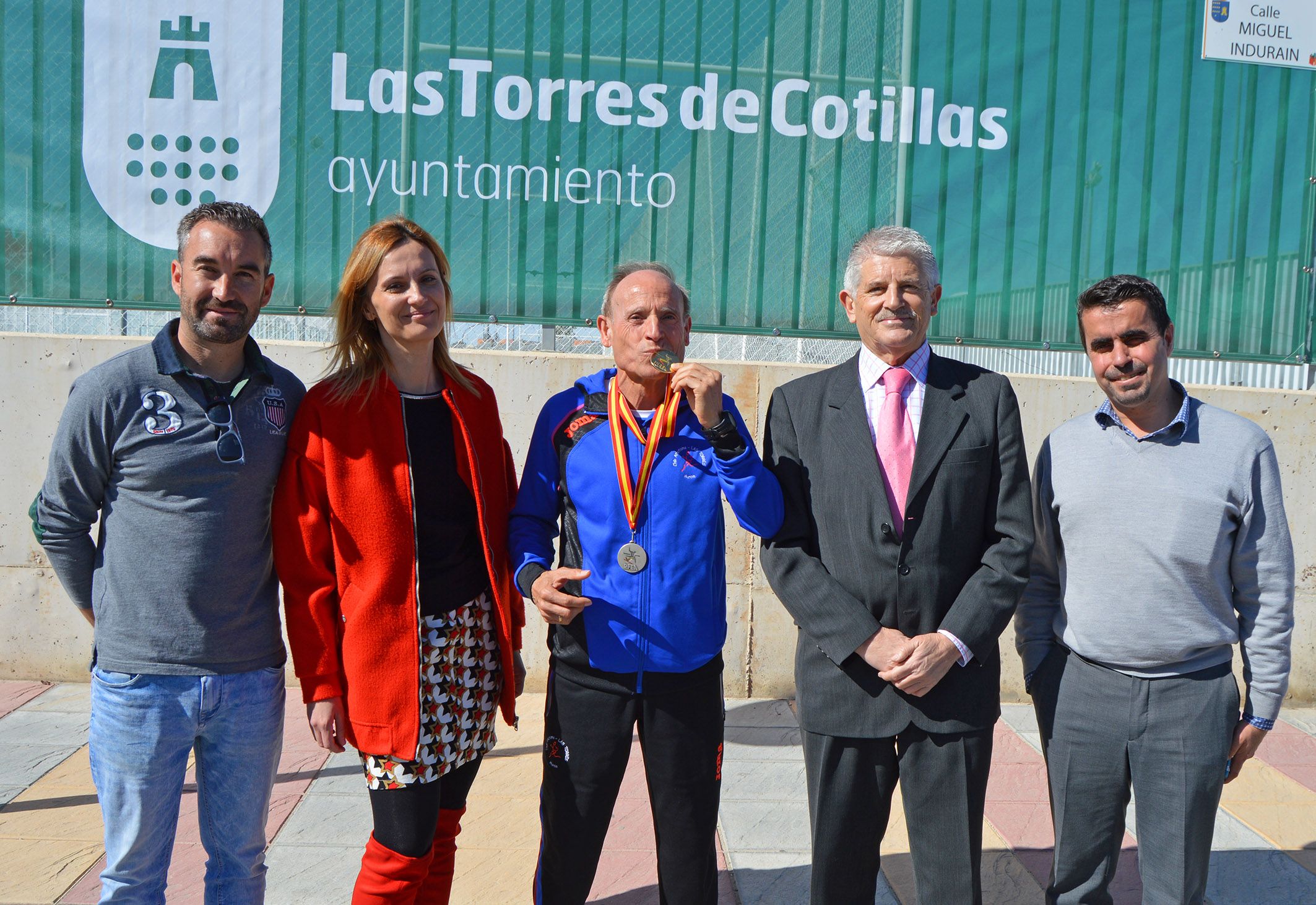 La alcaldesa de Las Torres de Cotillas Isabel María Zapata y el director general de Deportes Alonso Gómez quisieron rendir homenaje al atleta torreño Ángel Salinas, que aumentó su amplio palmarés con dos nuevas medallas en el XXIX Campeonato de España de veteranos en pista cubierta celebrado recientemente en Salamanca. Para ello, le dispensaron una recepción oficial en las instalaciones del polideportivo municipal, en un acto en el que también participó el concejal de Actividad Física y Deportes Ginés Pérez.