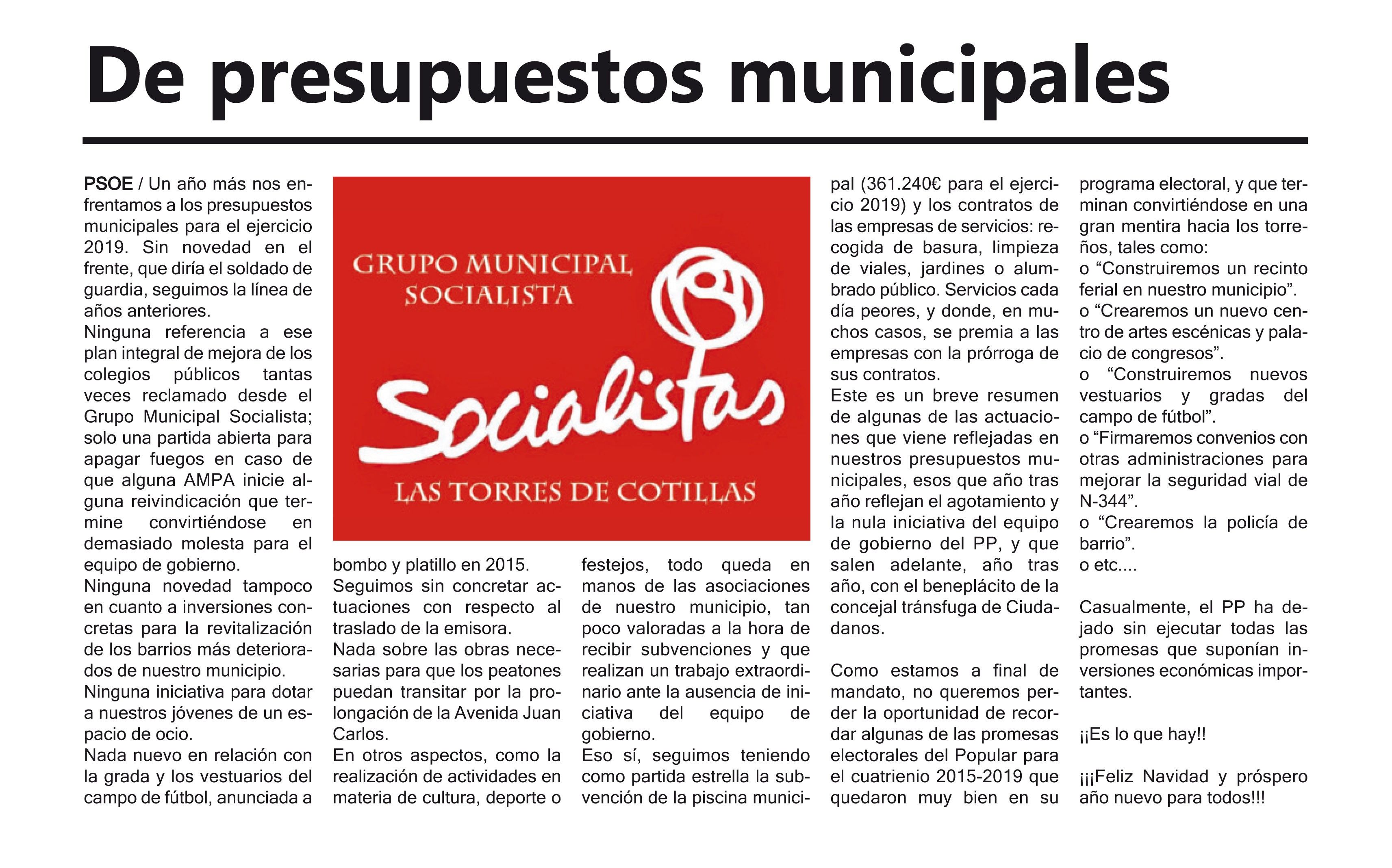 · Agosto 2019 (el boletín municipal no incluía opiniones de los grupos municipales)