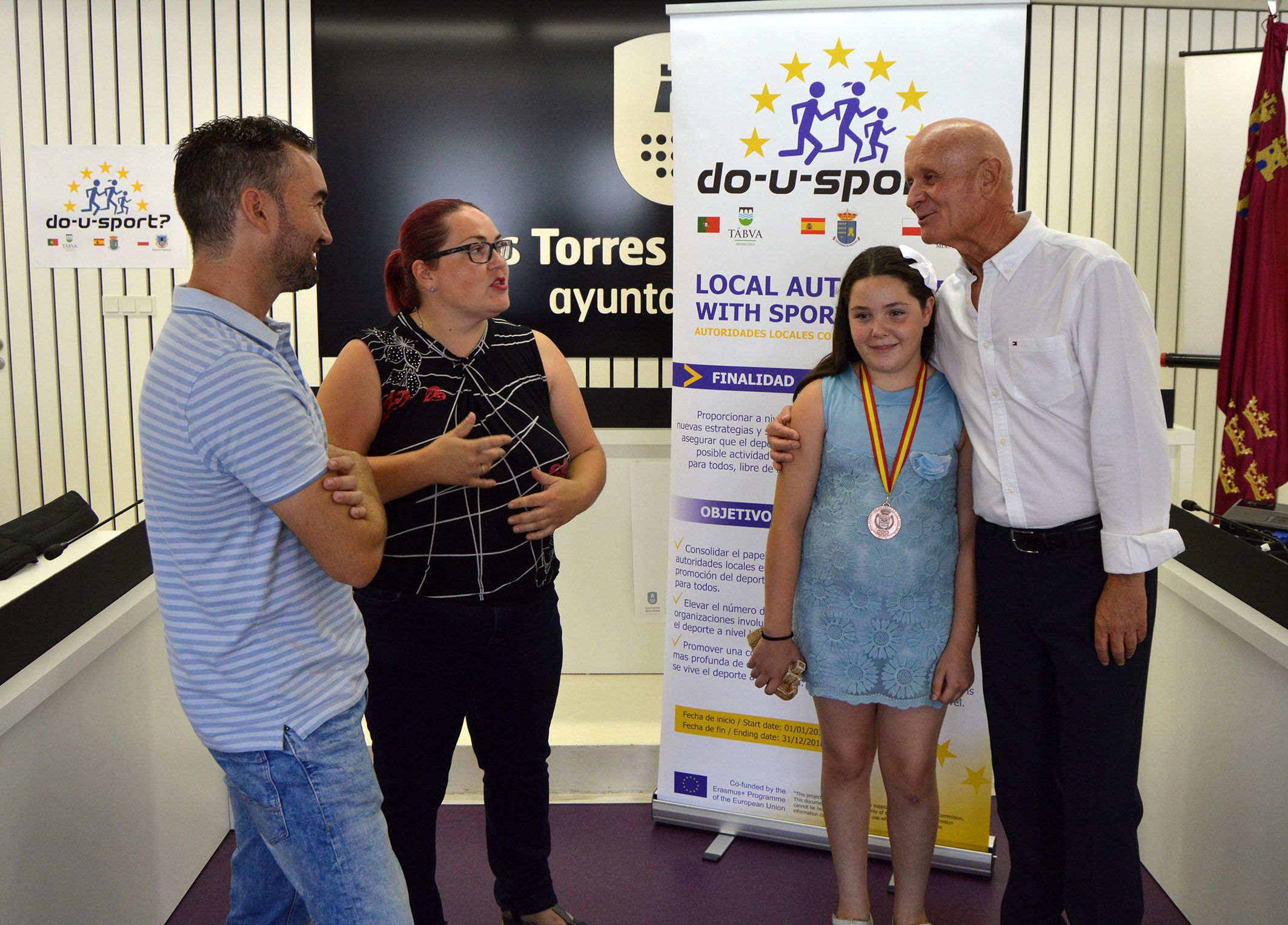 Dos medallas de oro y un bronce en Campeonatos de España es el bagaje del deporte torreño en los últimos días, unos triunfos logrados por tres de sus jóvenes representantes. Éstos son Mónica Gómez (tiro con arco) y Daniel Navarro (motocross), y José Peñalver (patinaje), deportistas que han sido recibidos en la mañana de hoy jueves 13 de julio por el alcalde torreño, Domingo Coronado, y su concejal de Actividad Física y Deportes, Ginés Pérez, en el salón de plenos del Ayuntamiento local.