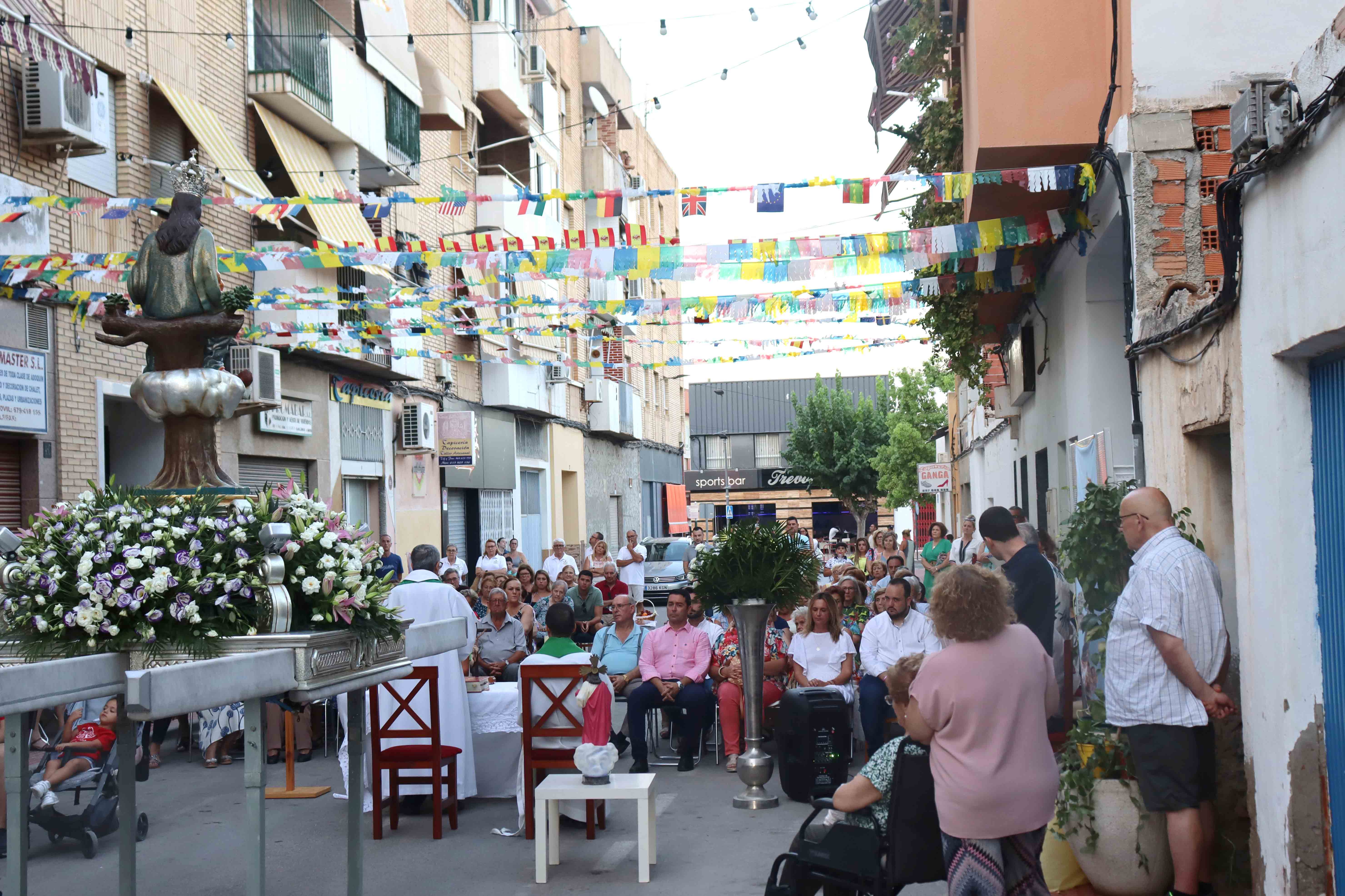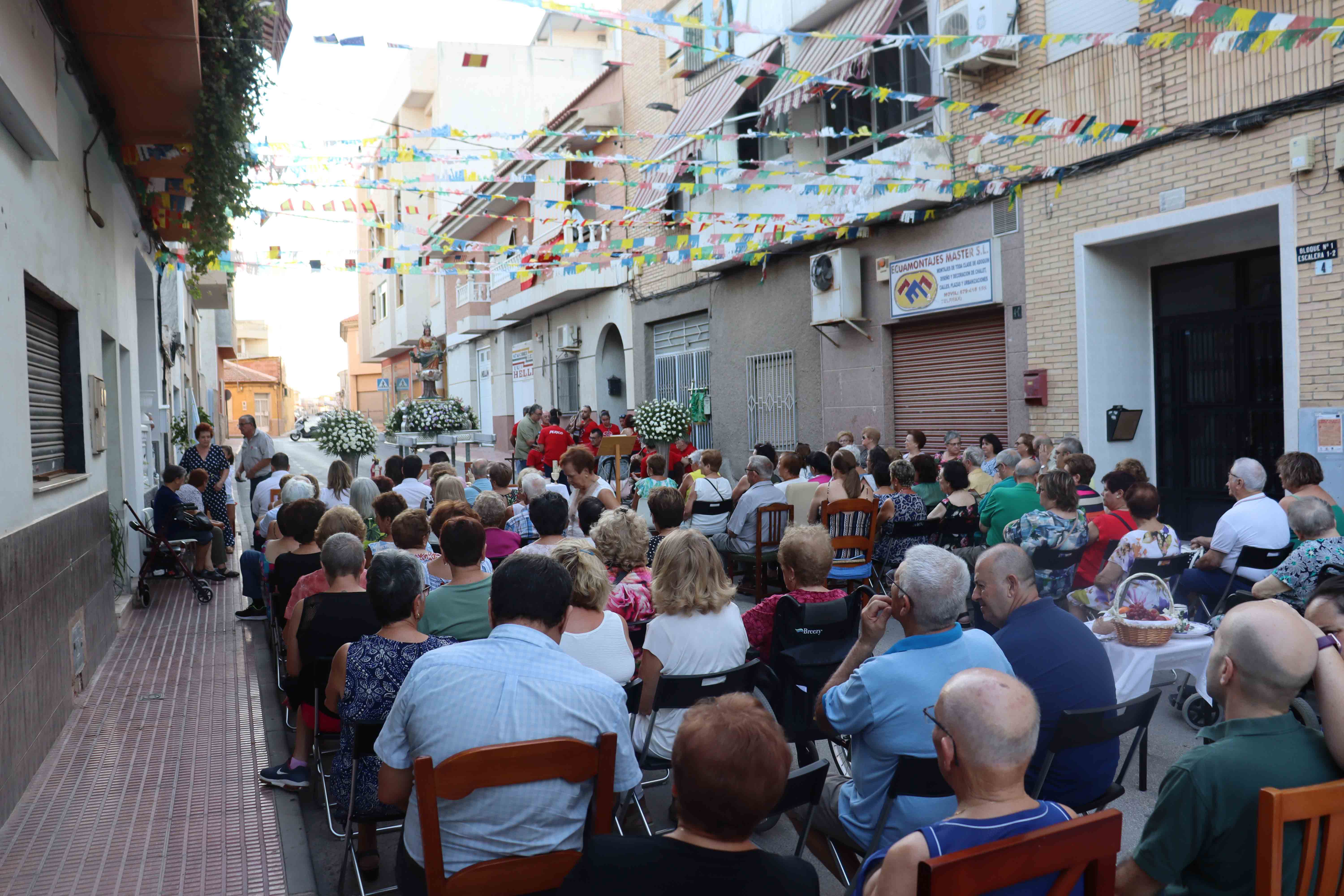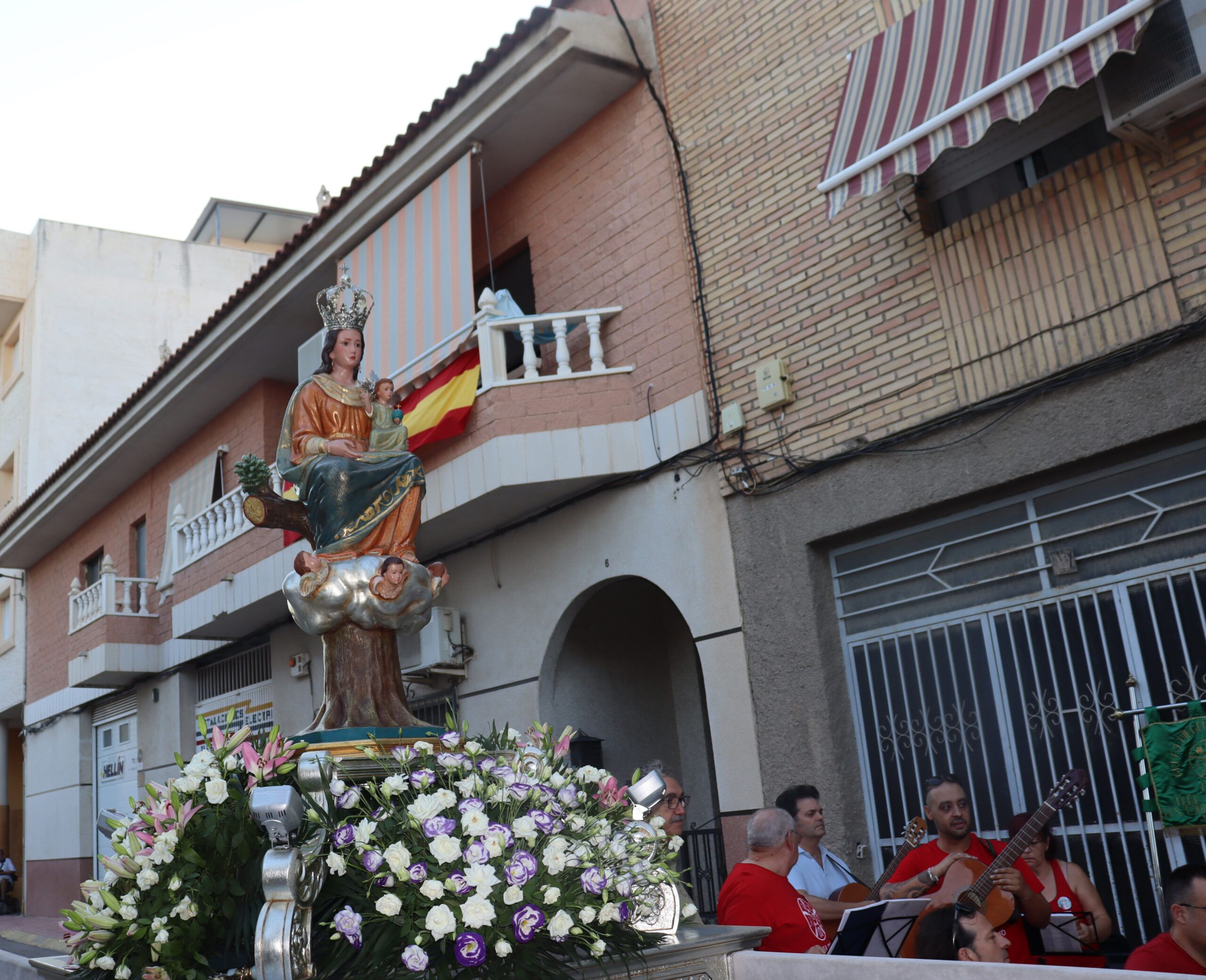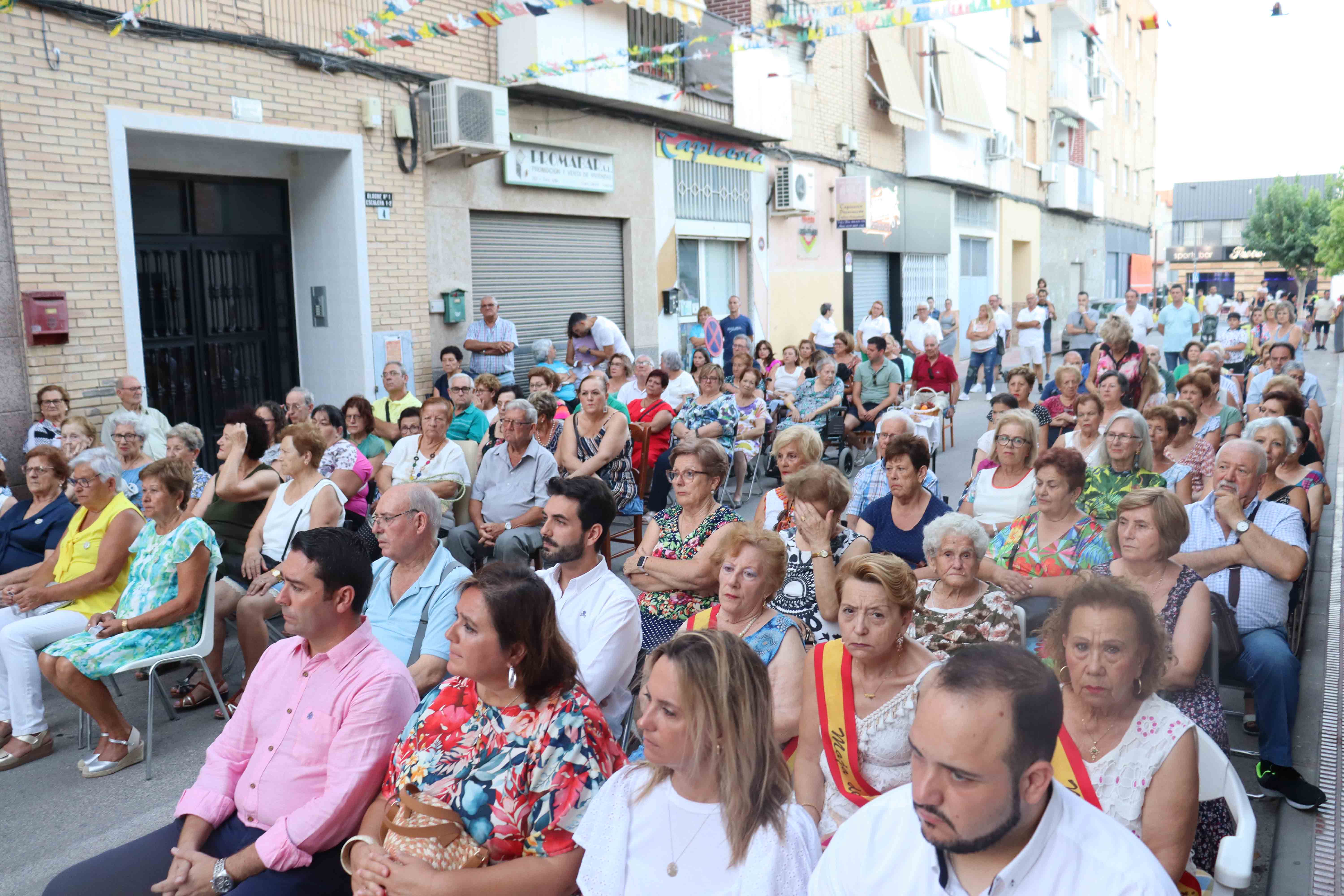 Celebración de la Santa Misa dentro del programa de actos que tienen lugar con motivo de las fiestas patronales en honor a la Virgen de la Salceda, con asistencia de numerosos vecinos de todas las edades y del alcalde, Pedro José Noguera, así como la primera teniente de alcalde, Isabel María Zapata, el pregonero de los festejos, Joaquín Conesa, diferentes miembros de la Corporación municipal y las Majas Mayores.