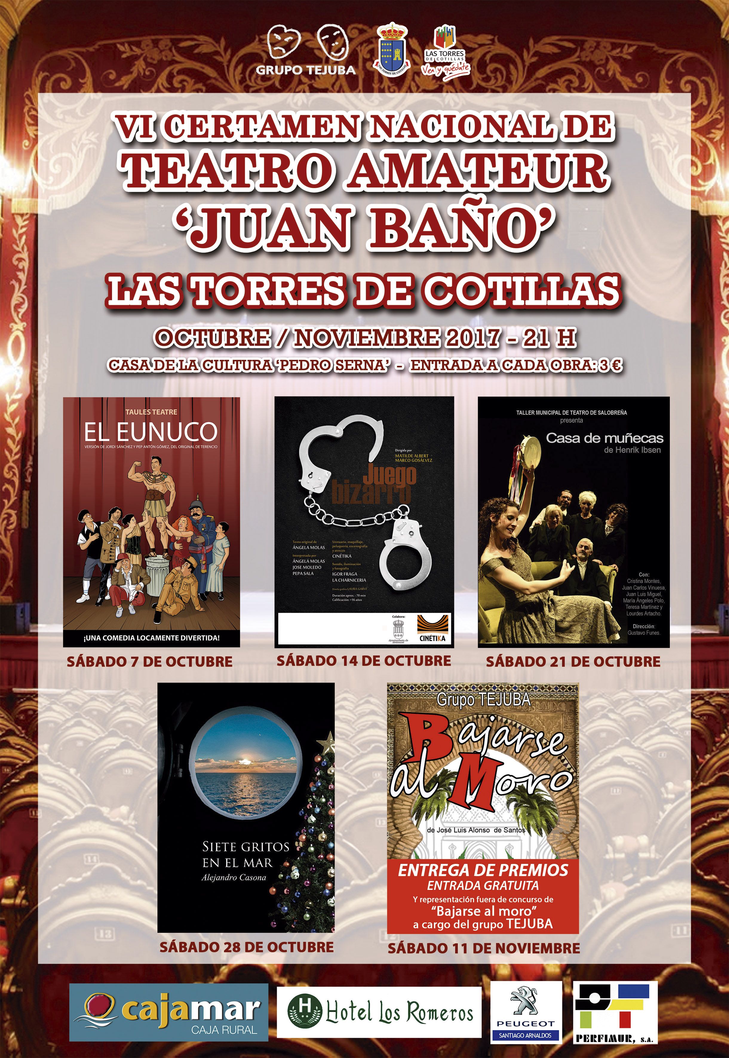 Este concurso teatral para grupos aficionados de toda España se desarrollará entre octubre y noviembre, y está organizado un año más por la Concejalía de Cultura y el grupo de teatro aficionado ‘Tejuba’ torreño. “Todas las obras a concurso serán representadas los sábados de octubre, a las 21 horas, en la Casa de la Cultura ‘Pedro Serna’ y contarán con una entrada de 3 euros”, señala el concejal de Cultura, Pedro Cabrera, que apunta que el certamen repartirá cerca de 2.000 euros en premios.
