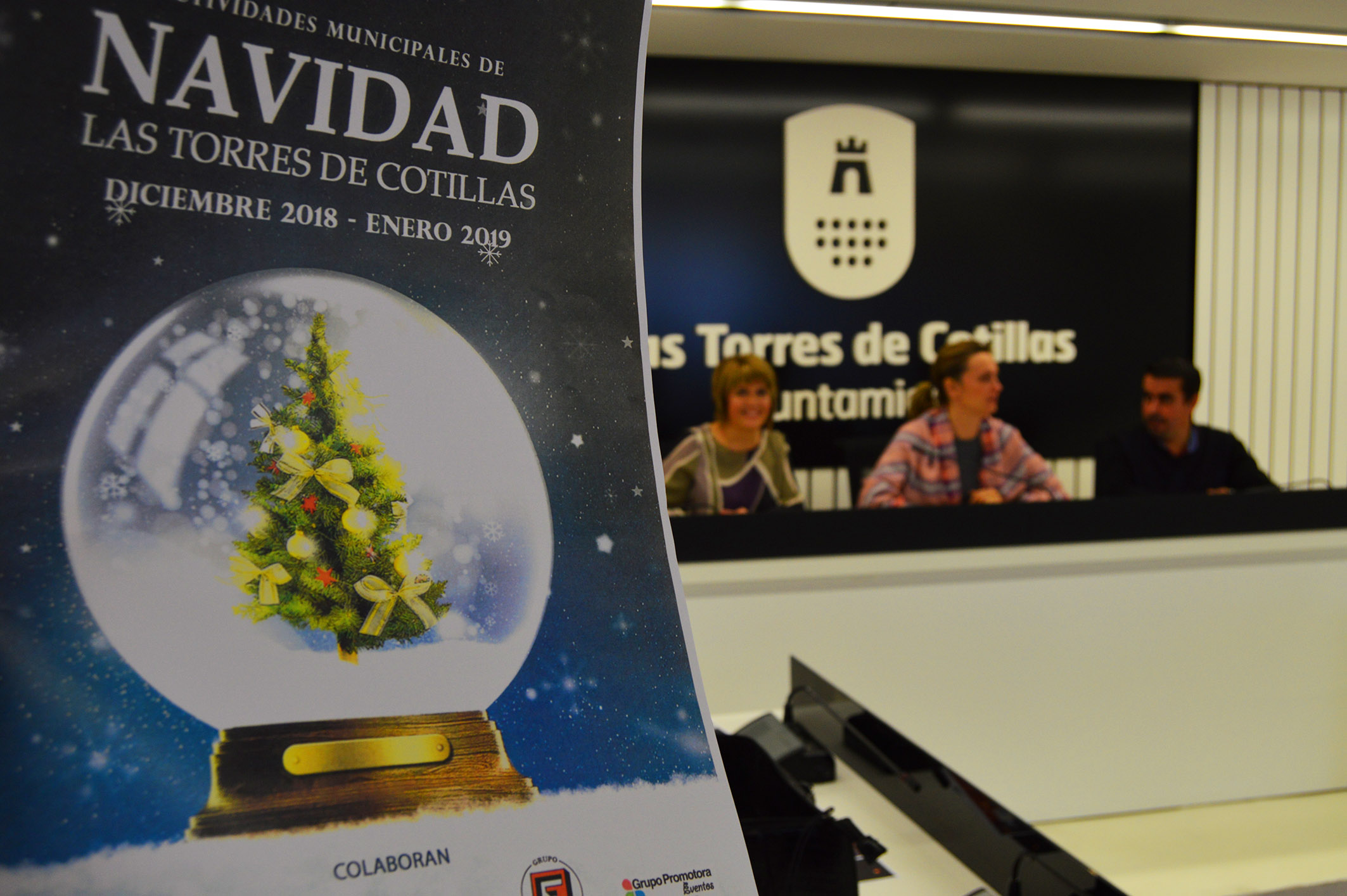 Ya es Navidad en Las Torres de Cotillas. Y es que mañana sábado 1 de diciembre comienzan los actos municipales programados por la Concejalía de Festejos para celebrar estas fiestas en la localidad. Una programación que ha sido presentada hoy en el Ayuntamiento torreño por la alcaldesa, Isabel María Zapata, y la concejala de Festejos, Amalia Pérez.