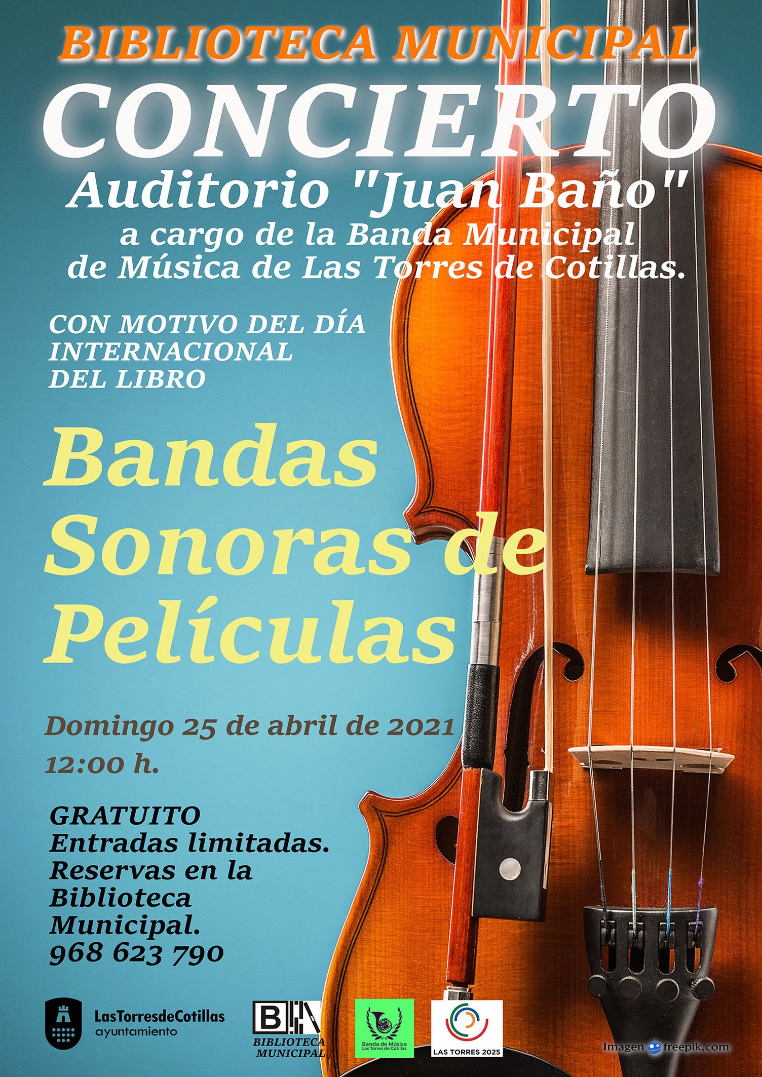 La segunda será un concierto de bandas sonoras de películas que la Banda Municipal de Música protagonizará en el auditorio municipal “Juan Baño” el domingo 25 de abril (12 horas). “Ambas actividades contarán con asistencia gratuita y entradas limitadas, por lo que es indispensable la inscripción previa, que se puede realizar llamando al 968.623.790”, informa el concejal Antonio Contreras Martínez, que explica que estas citas seguirán todas las medidas de seguridad anti-COVID.