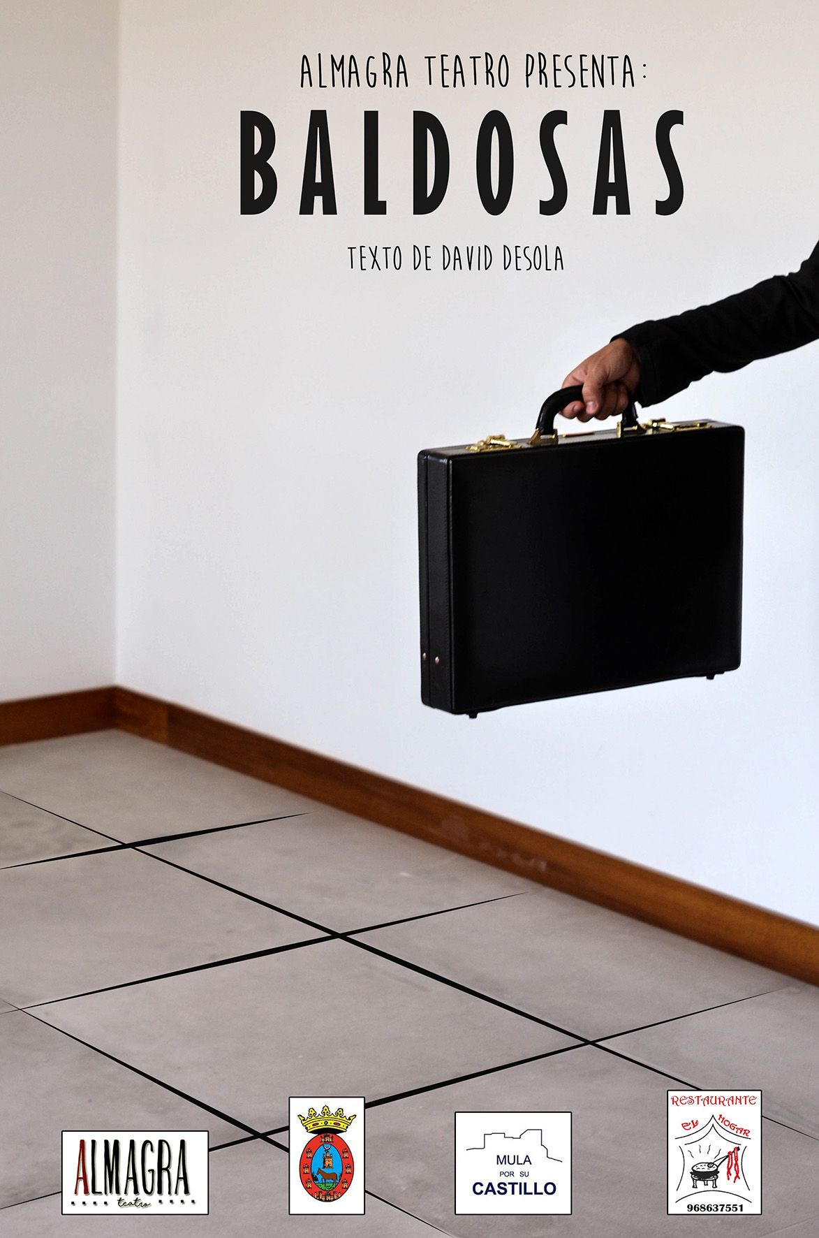 Mañana sábado 27 de octubre (20’30 horas) cierra su concurso el ‘VII Certamen Nacional de Teatro Amateur Juan Baño’ de Las Torres de Cotillas con su cuarta representación. Será la de la obra ‘Baldosas’, que será puesta en escena por el grupo ‘Almagra Teatro’ (Mula). Una comedia agridulce que caricaturiza el mercado inmobiliario y sus gentes a través de un persuasivo vendedor, quien resulta ser también una víctima del sistema.