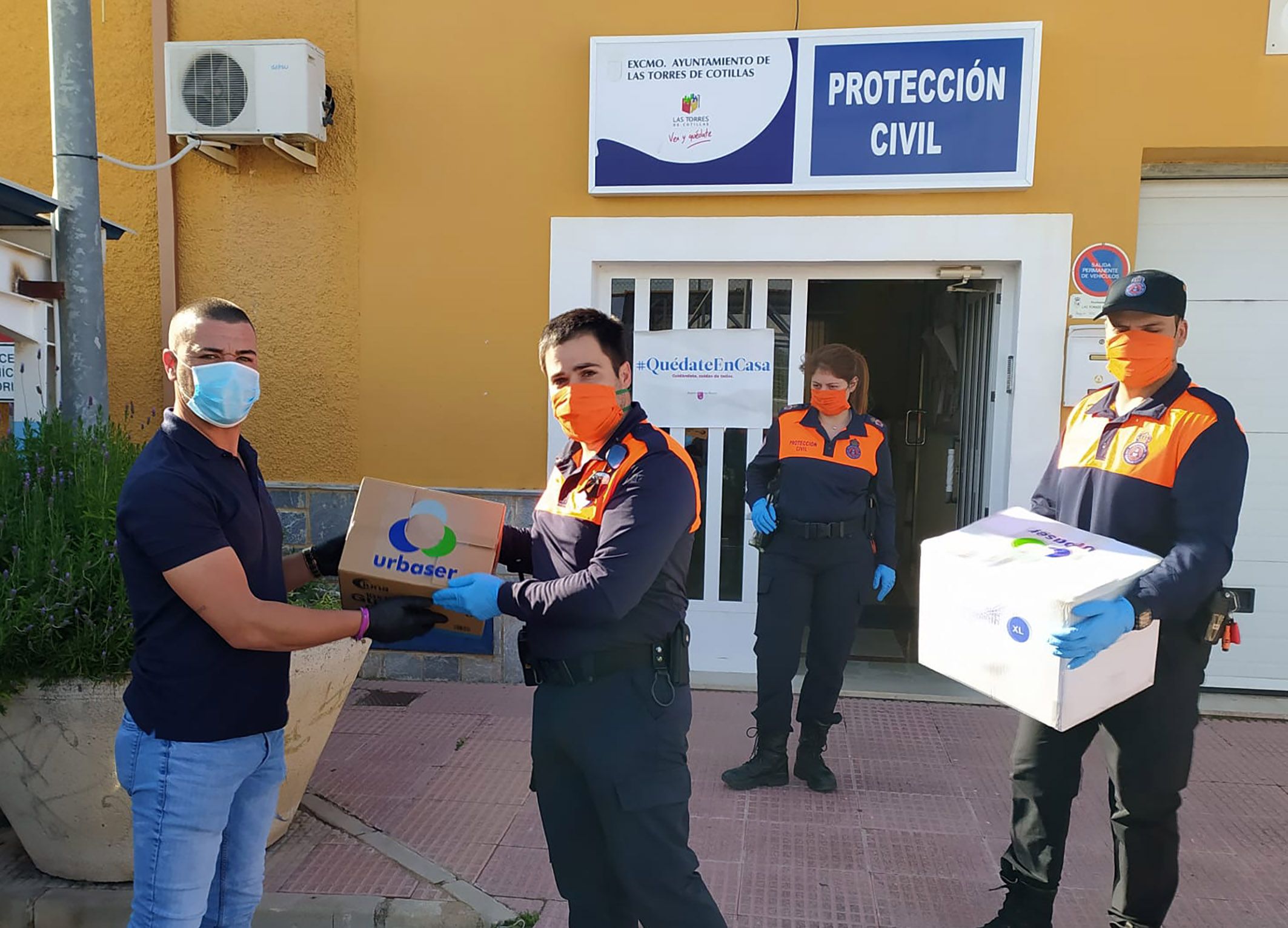 Urbaser, concesionaria del servicio municipal de recogida de residuos sólidos urbanos y limpieza viaria de Las Torres de Cotillas, también ha hecho su aportación para que los empleados públicos del municipio realicen su labor con mayor seguridad. Esta donación de equipos de protección individual (EPI) para afrontar esta crisis sanitaria provocada por la COVID-19 se compone de 250 mascarillas ffp2, 20 buzos categoría III y 600 guantes de nitrilo.