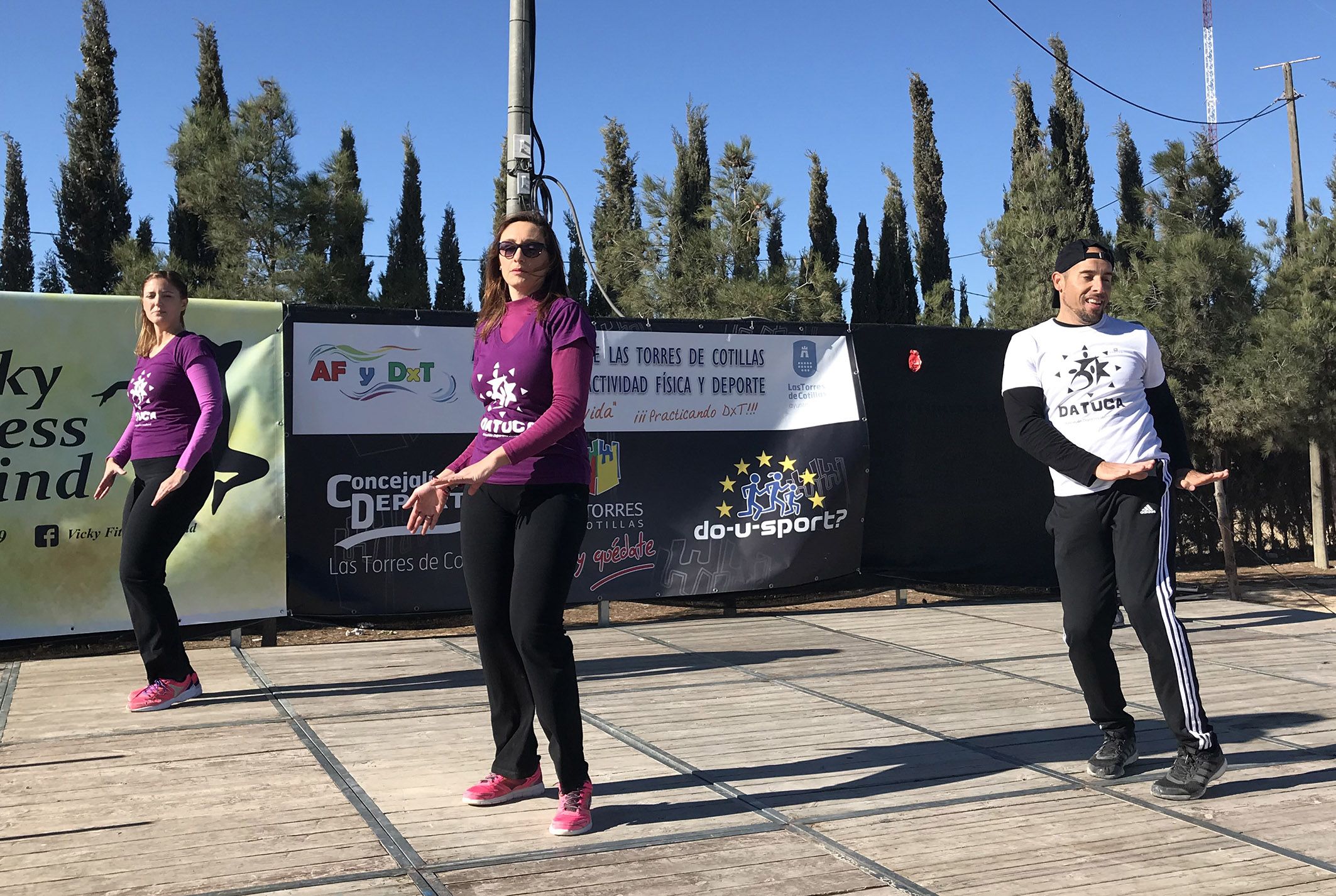 ‘Zumbaila’. Ése era el título de la quinta actividad del proyecto europeo ‘Do-U-Sport’, que tuvo lugar en Las Torres de Cotillas en la mañana del pasado domingo 3 de diciembre. Una jornada de baile organizada por la Concejalía de Juventud, Actividad Física y Deportes en el Parque de la Emisora, y en la que colaboraron ‘Brodguay Artes Escénicas’, ‘Vicky Fitness & Mind’, ‘Datuca’, ‘Academia de Danza Víctor Campos’, ‘Kimera’, ‘State Sport Group Las Torres’ y ‘Diamoray Jamouray’. “La zumba es un deporte emergente, divertido y en continua expansión, una disciplina fitness que está de moda enfocada por una parte a mantener un cuerpo saludable y por otra a desarrollar, fortalecer y dar flexibilidad al cuerpo mediante movimientos de baile combinados con una serie de rutinas aeróbicas”, señala el concejal del área, Ginés Pérez.